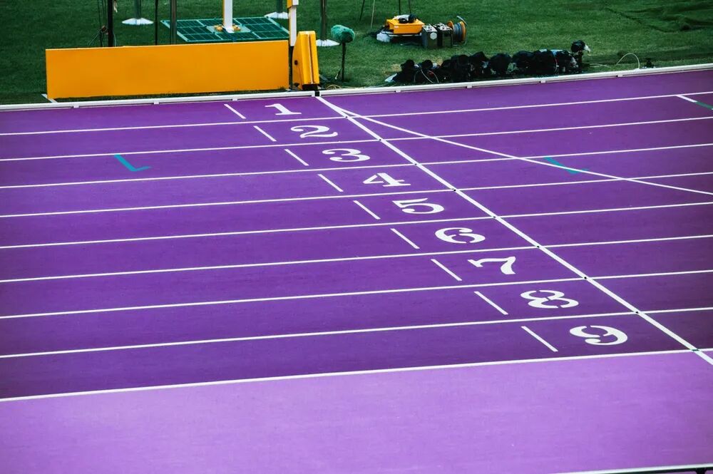 要知道,过去赛场上的跑道不是蓝色就是红色,从来都没有出现过紫色。