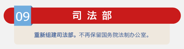 将司法部和国务院法制办公室的职责整合,重新组建司法部,作为国务院组成部门。不再保留国务院法制办公室。