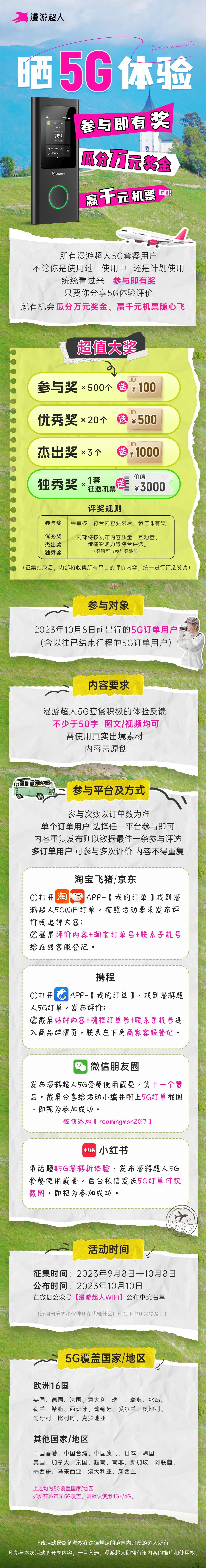 十一豪礼!晒5G体验领3000元机票&瓜分万元京东卡