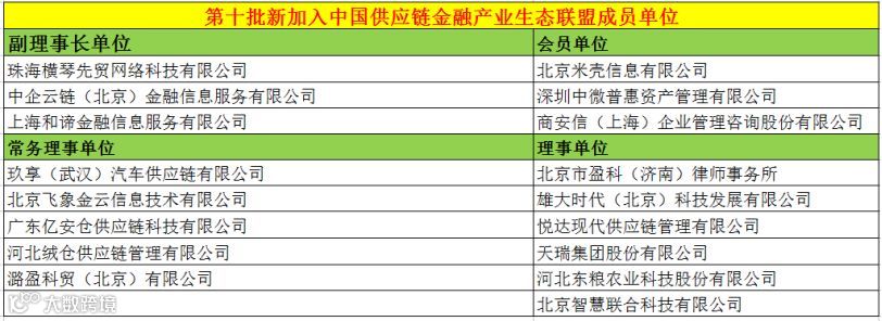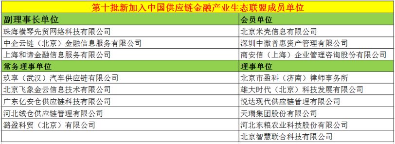 中国供应链金融产业生态联盟第十批新成员授牌