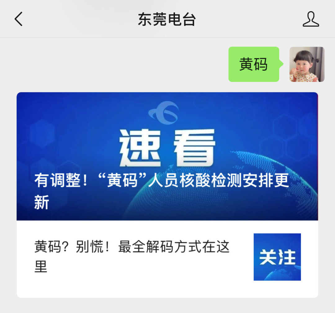 此外,具备黄码检测通道的采样点名单也可在“东莞电台”微信公众号底部菜单的“电台服务”-“便民核酸”中查询。(注:黄码专区是免费检测的。)