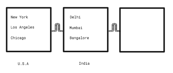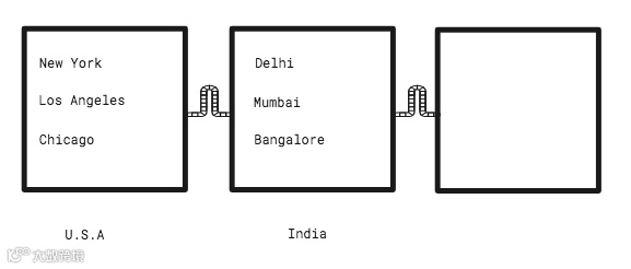 举个例子你就明白了,下图中方框代表国家,每个方框里每个国家的一些城市名字。