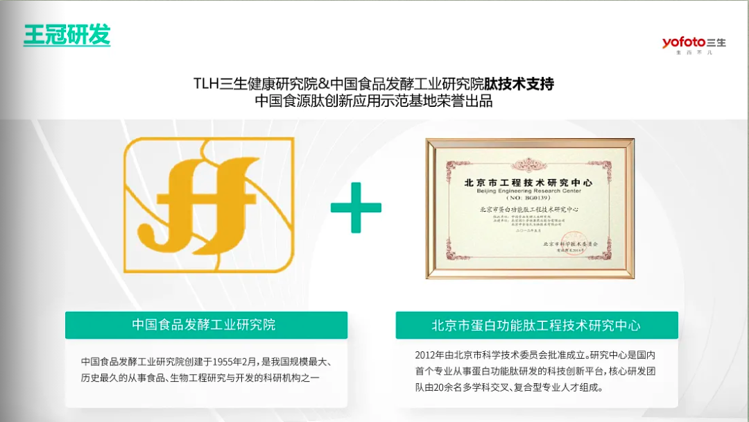 ➤ TLH三生健康研究院&中国食品发酵工业研究院肽技术支持,中国食源肽创新应用示范基地荣誉出品,专利技术领跑行业。