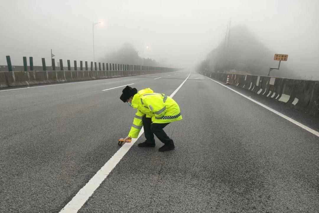 1月15日11时24分起,清远交警联合路政在二广高速南行九嶷山K2424开始收窄车道,将快车道、慢车道通过摆放雪糕筒的方式进行车道压缩,压缩成慢车道通行,并设置“冰雪天气,谨慎行驶”的警示标志牌,收窄车道总长约9公里。