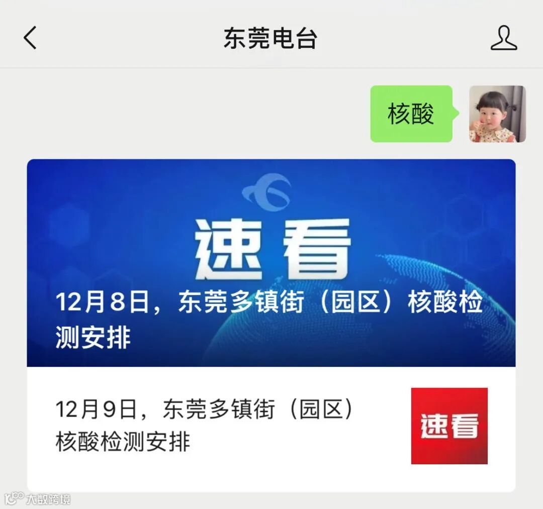 明日(12月9日),东莞这些镇街已提前发布核酸检测相关安排:虎门、石龙、企石、茶山、长安、塘厦、大岭山、大朗、寮步、常平、东城、洪梅、万江、沙田、樟木头、横沥、石排、莞城、南城、高埗、麻涌、厚街、清溪、黄江、凤岗、东坑、松山湖、谢岗、桥头、石碣、望牛墩...(各镇街最新安排,小编会及时跟进与更新,请密切留意。)
