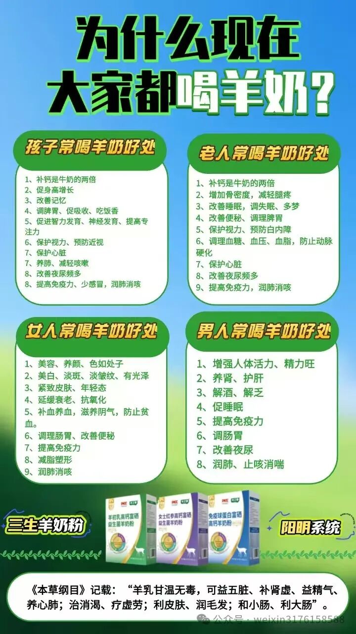牛奶中的a-s1酪蛋白和乳球蛋白是目前公认的过敏原,而三生羊之歌羊奶粉可解除大部分牛奶蛋白引起的过敏症。