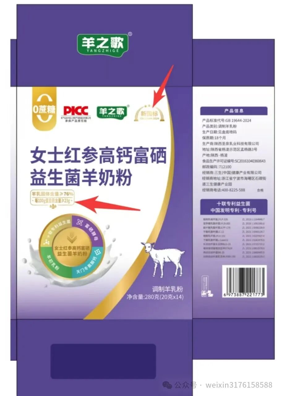 四、品质保障:三生羊奶粉产品底部设有溯源码,每款产品由PICC承保3000万,还积极参与公益活动提升品牌形象。