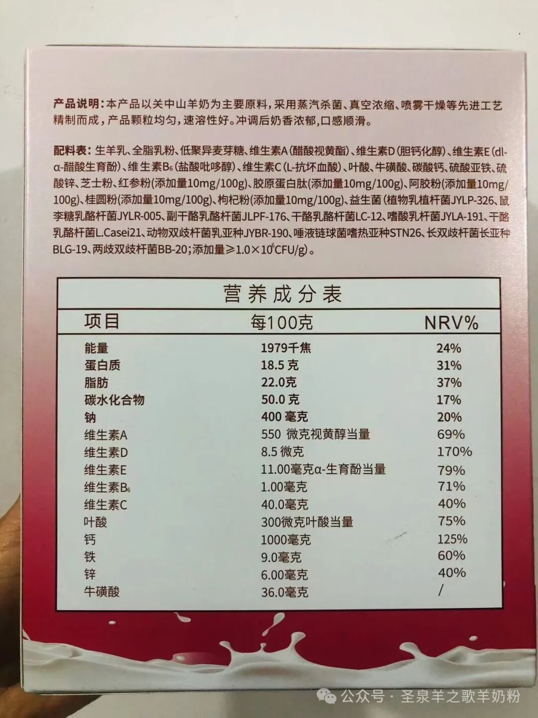然后我又深入的去看看女性款《女士红参高钙益生菌羊奶数粉》它里面有红参,有阿胶补气血的。