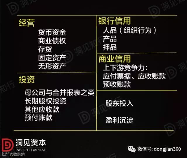 首先,最重要的是货币、应收账款/票据、存货,以及短期借款和应付账款/票据,因为这些体现了一家公司的活力。活力就是说这家公司在没有其他任何东西的时候,通过应收账款存货是可以生存下来的。公司可以把存货给卖掉,就有收入,把应收账款收回来就有收入,有货币也能够回来。从负债的方面来讲,就看这家公司有多好的一个短期借款的能力,以及有多好的一个对上游供应商的欠款的能力,就是应付账款和应付票据。
