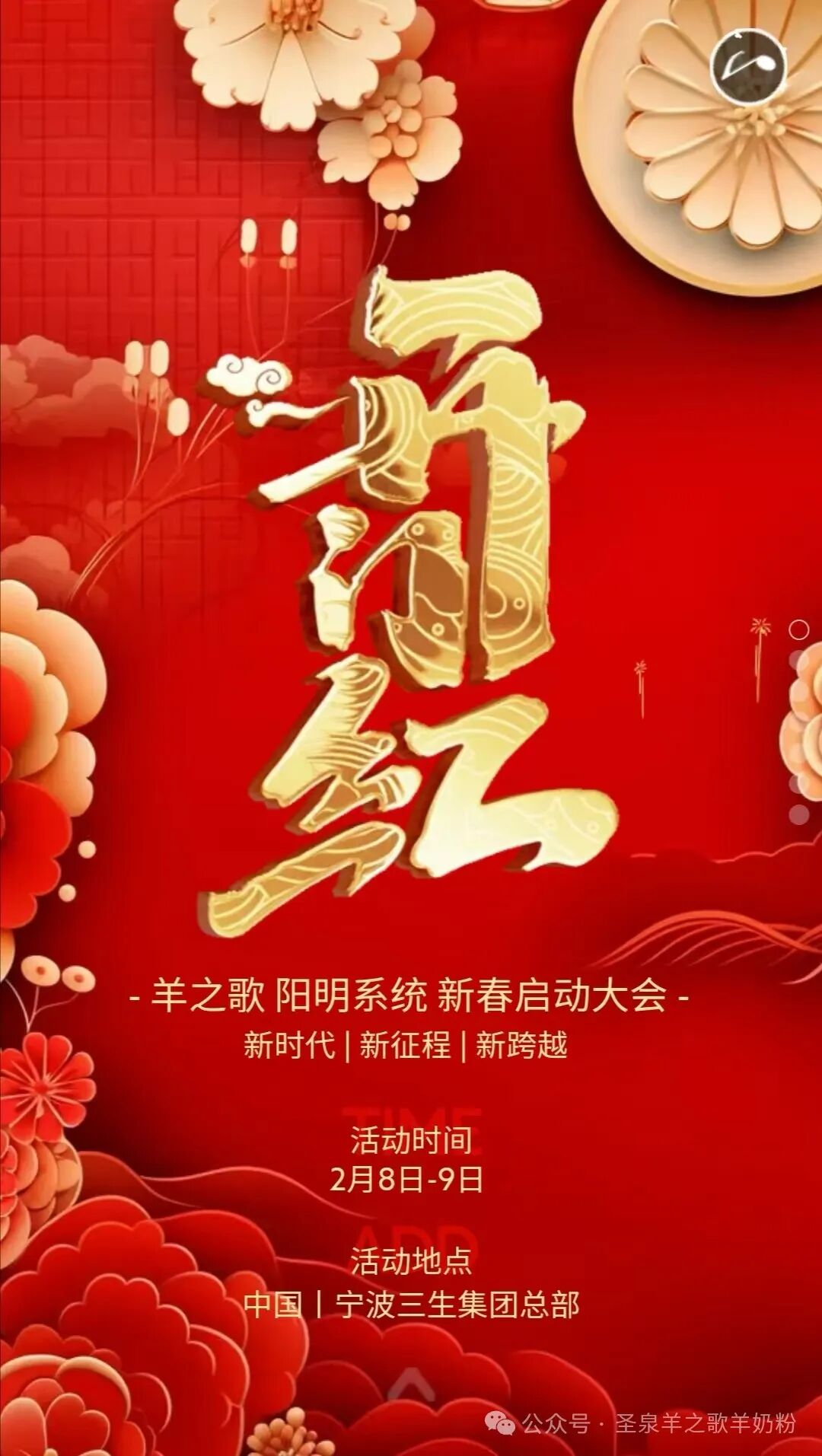 抢占先机,共赢未来!阳明系统羊之歌羊奶粉2025年蛇来运转★羊帆起航新春启动会,2月8日-9日浙江宁波盛大开启!行业大咖齐聚,干货分享不断,带您洞悉羊奶粉市场新趋势,抢占百亿市场先机!