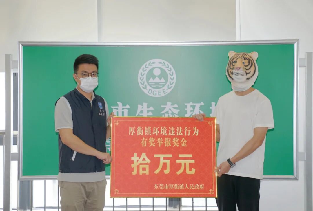 8月5日,厚街生态环境分局举行环境违法行为有奖举报奖金发放仪式,对积极参与环境违法行为有奖举报的市民进行奖励。其中,厚街一位热心市民获得10万元奖励。