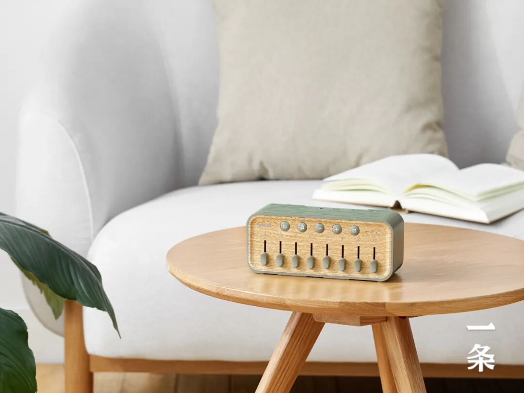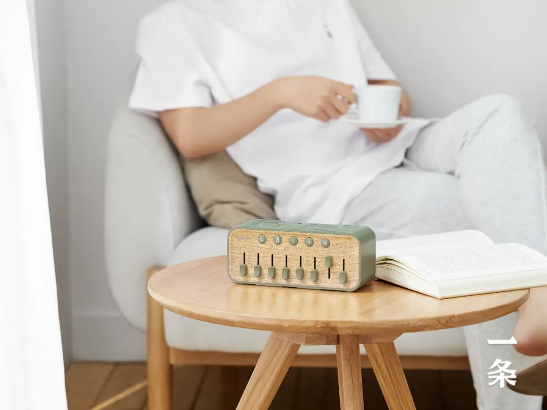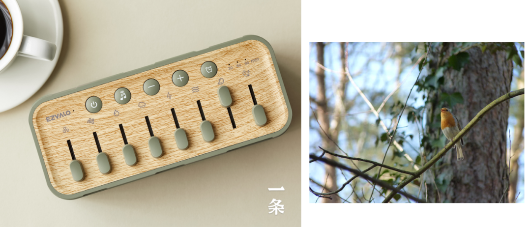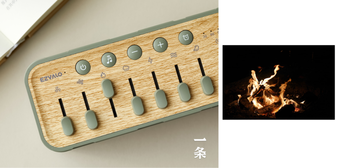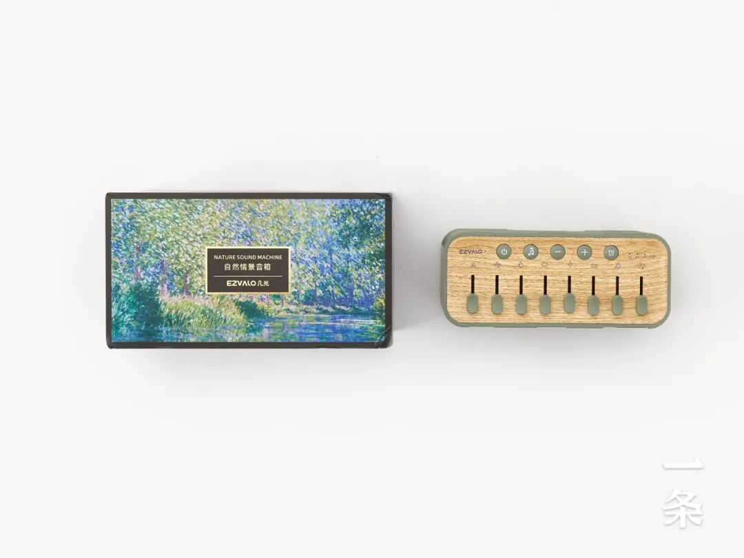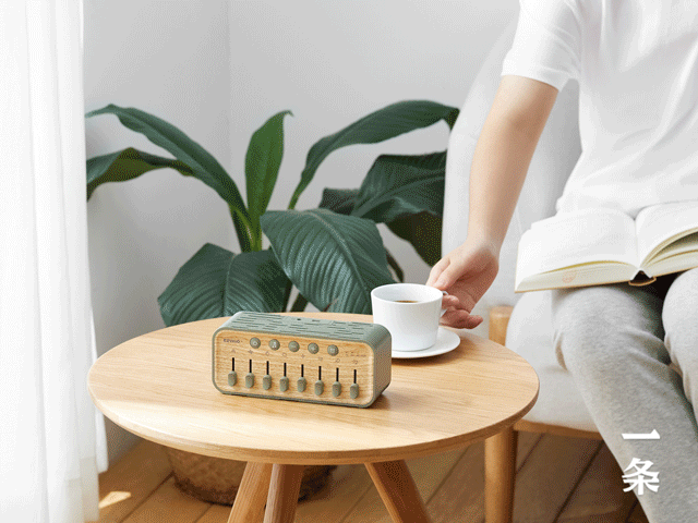 音箱里藏着8种不同的自然界音频:阿尔法波、自然风声、篝火声、雨声、雷鸣声、流水声、鸟鸣声、白噪音。