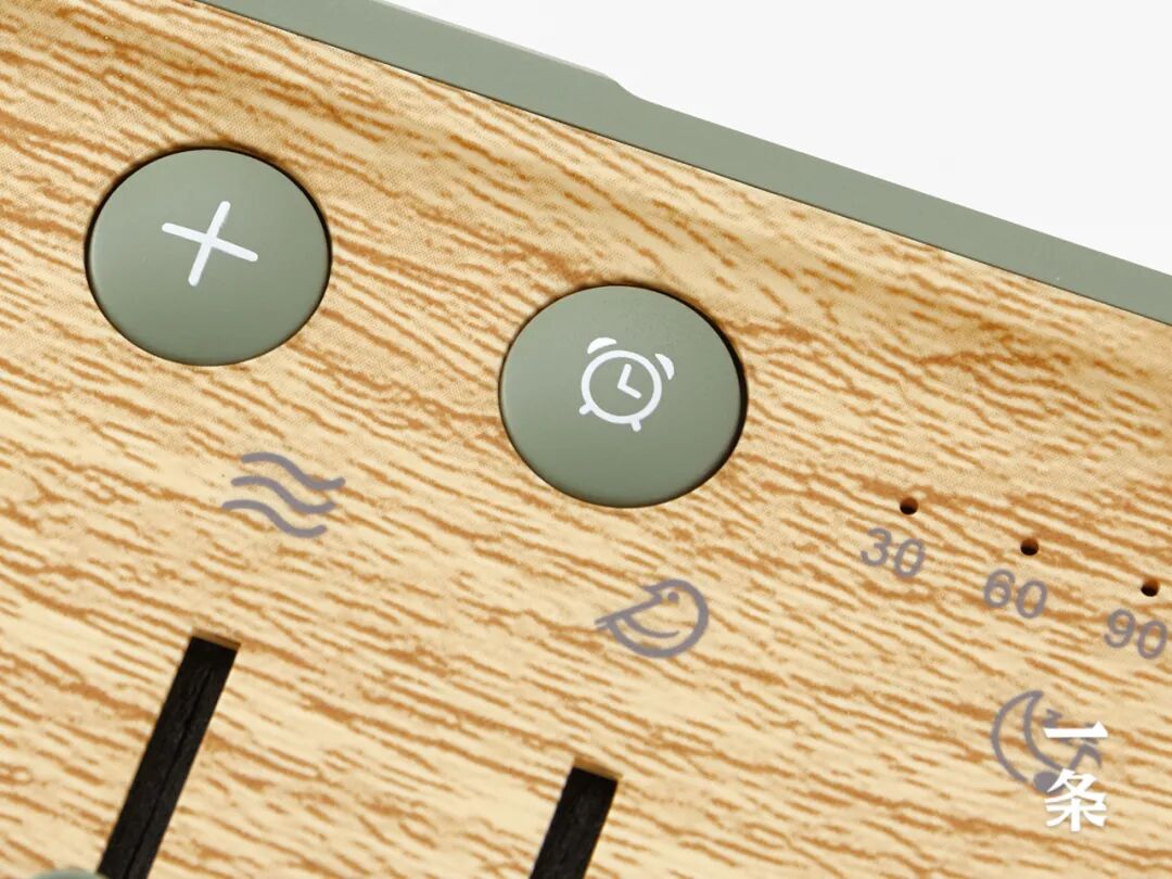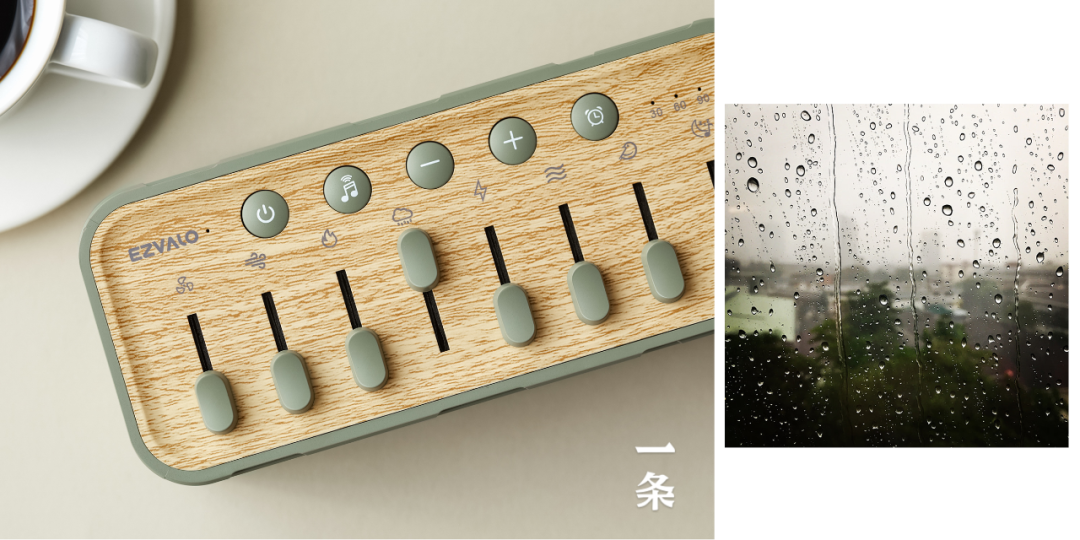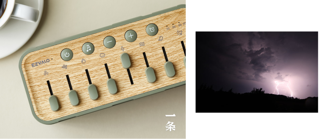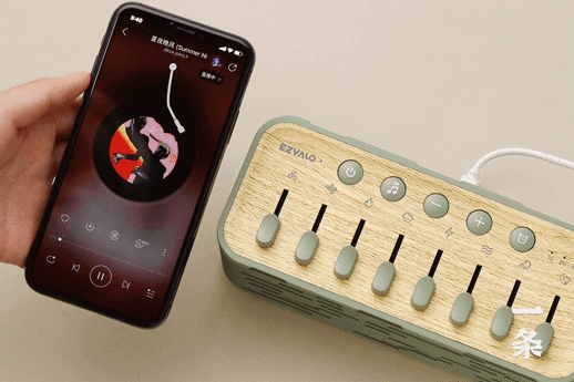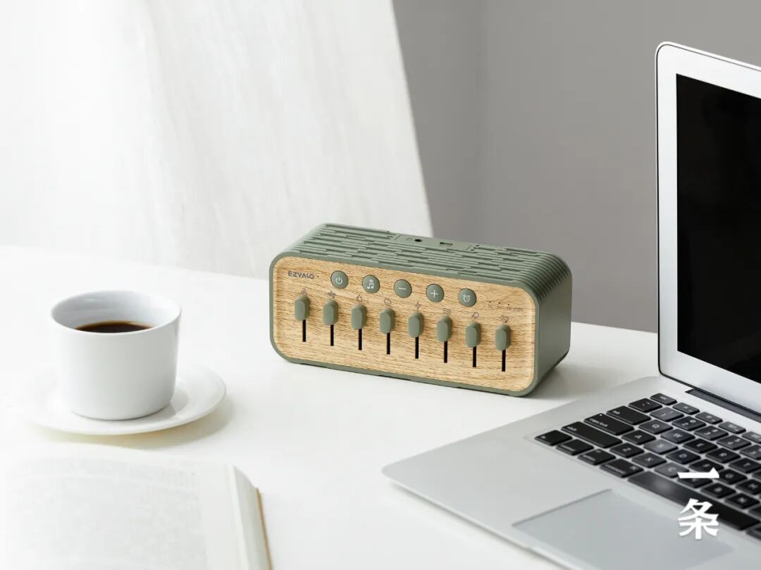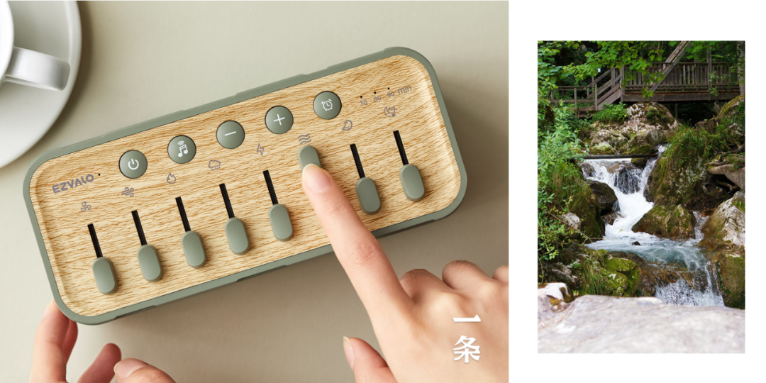 音箱里藏着8种不同的自然界音频:阿尔法波、自然风声、篝火声、雨声、雷鸣声、流水声、鸟鸣声、白噪音。