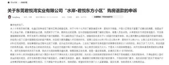 王女士表示:“我与现场销售提出,向开发商申请退房退款的合理请求,但开发商拖时间迟迟不处理,我多次与现场销售沟通处理,销售回复正在处理,但是一直没有结果,此情况已有2个多月的时间。”