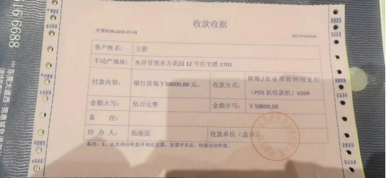 犹豫之后,王女士在2022年7月31日认购水岸·君悦东方项目12栋1703,认购之后本应该在2022年8月9日完成网签,但在筹措资金过程中出现了问题,没办法及时凑出资金来。之后也了解到开发商低首付政策要收回房价2个点的折扣,房价又多了几万元,而且低首付的利息也高,综合考虑自己的经济状况后,无法支付低首付每个季度的还款,加上房贷还款压力太大。