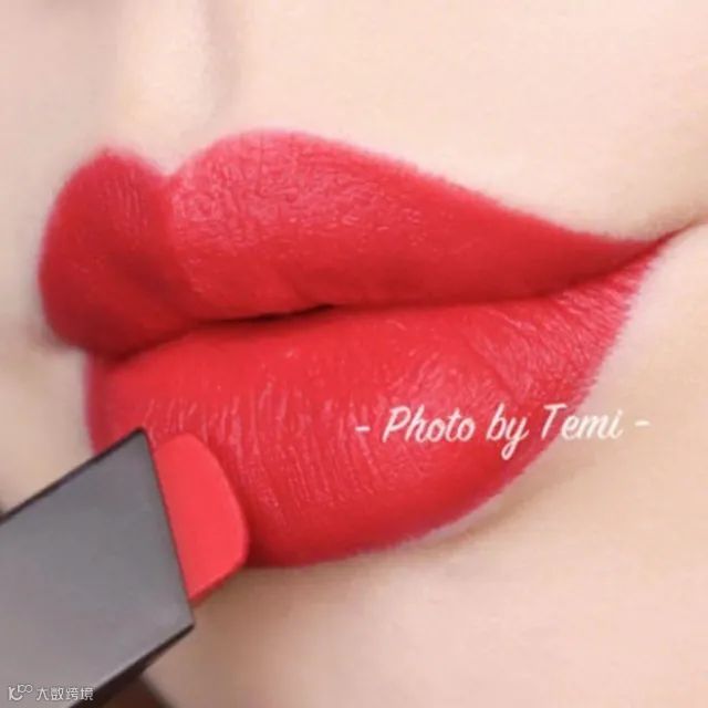 非常明艳动人的胡萝卜色,偏红色调,涂了肤色马上亮两个台阶。