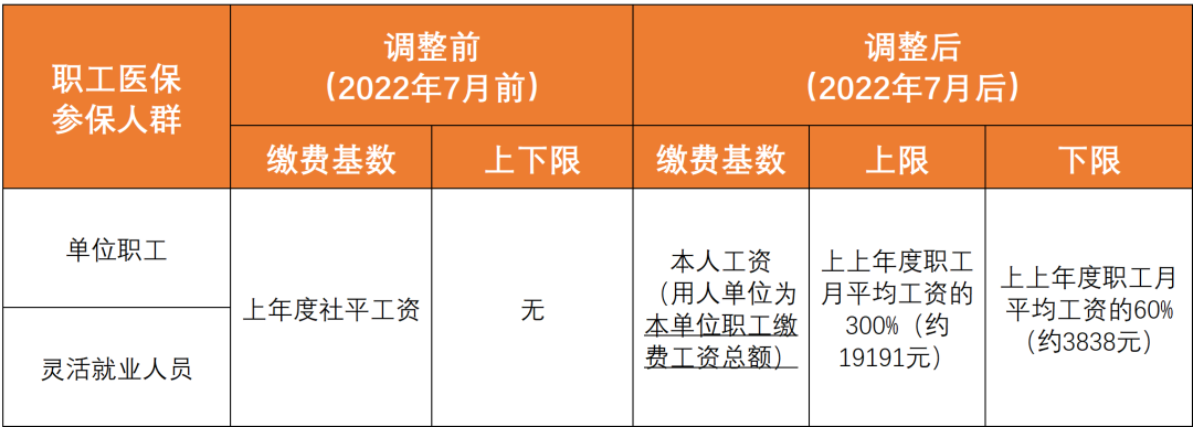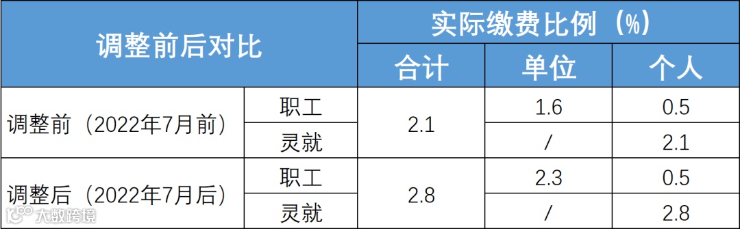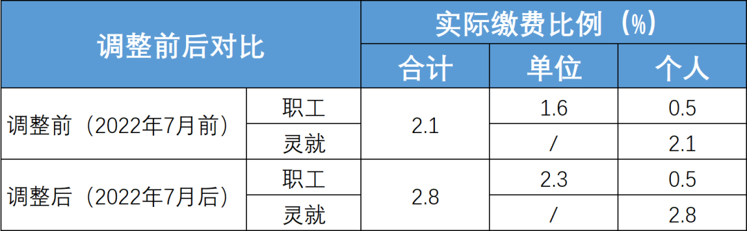 因应缴费基数的调整,职工医保缴费费率同步作出调整,实际缴费费率调整前后对比如下: