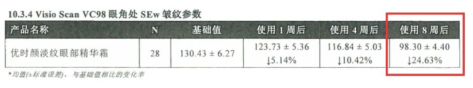 在特定实验条件下,使用8周后,可淡化24.63%的眼角纹理。