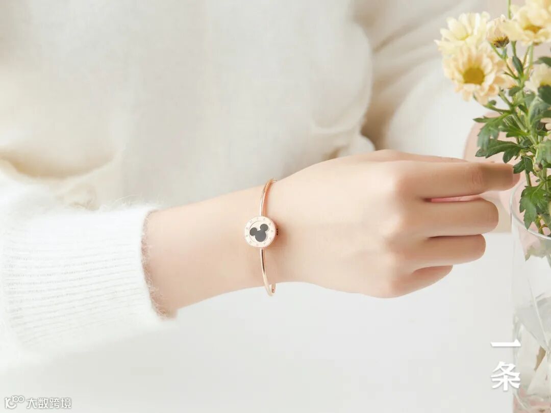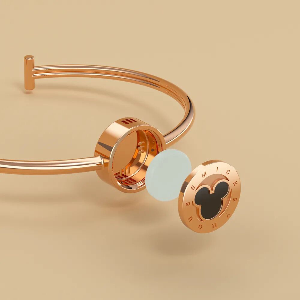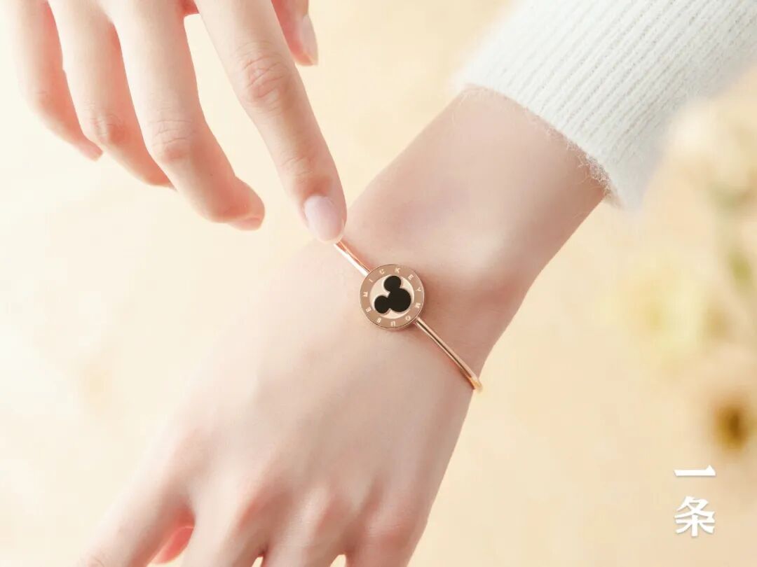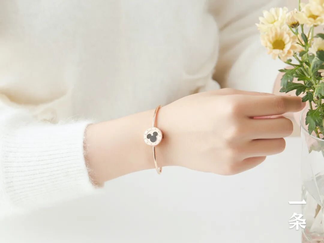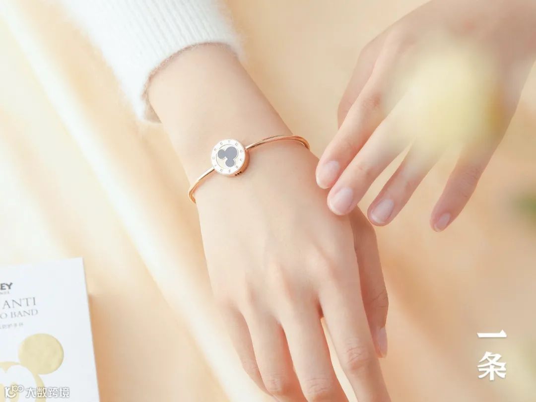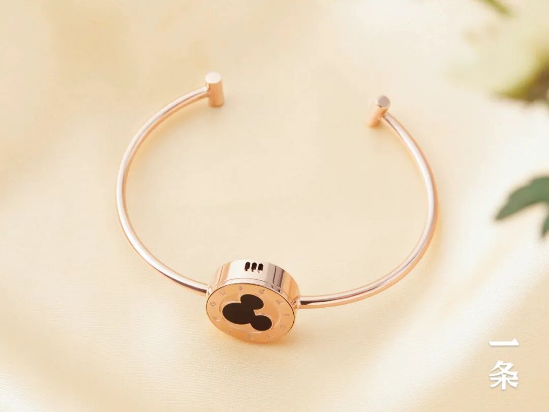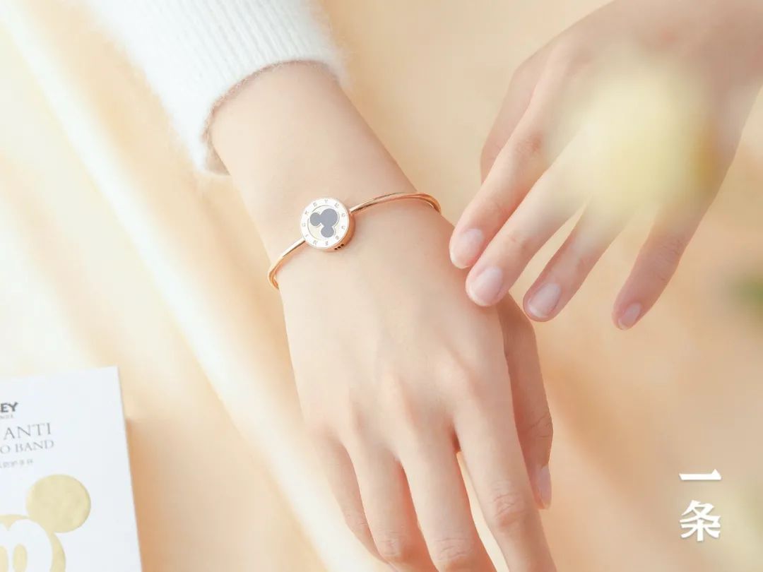在手环中间,有一个印着米奇头像的小小圆扣。