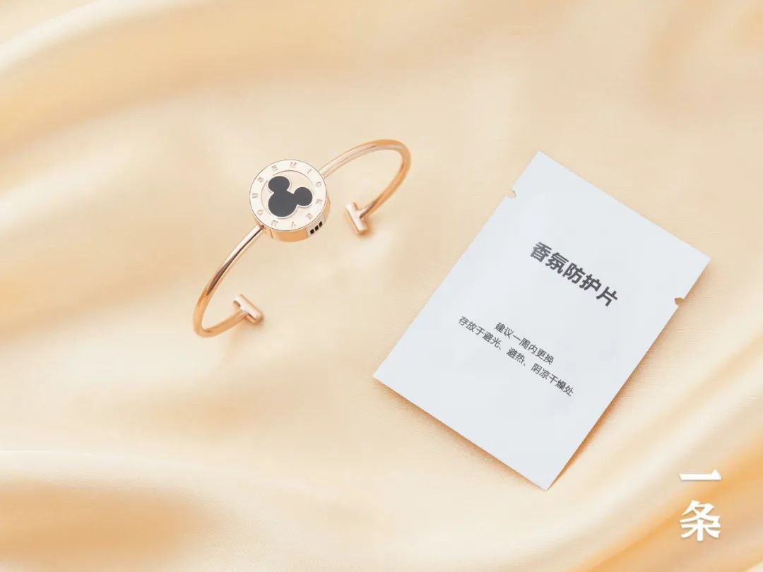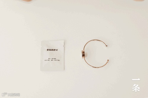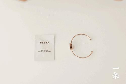 撕开香片包,把香片装进手环里面,香氛防护片的香味随之溢开。