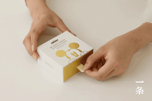 每条米奇系列香氛防护手环,都被精心的装在饰品专用防尘袋和抽拉式包装盒内。