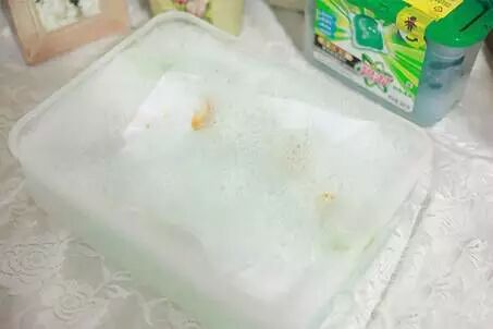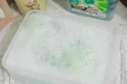 为了进一步挑战洗衣凝珠,小编将它静置在冷水中。5分钟后,外膜完全溶解。且稍加搅拌后,整颗凝珠都已溶解,并产生大量的泡沫。
