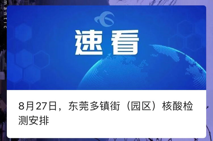 截至发稿,已发布核酸检测工作相关安排的镇街(园区)有:塘厦、黄江、寮步、东坑、南城、道滘、高埗、横沥、石排、桥头、石龙、清溪、大朗、沙田、凤岗、樟木头、松山湖、麻涌、中堂、厚街、望牛墩、茶山、大岭山、企石、谢岗(其余镇街安排,小编会及时跟进与更新,请密切留意。)