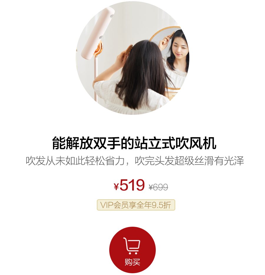 支持519元,可获得粉色款“品仕乐”站立式吹风机一台,价值699元。