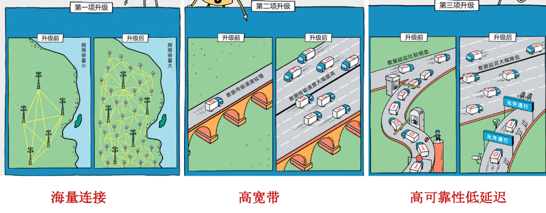 比如在介绍5G的优势时,如果直接告诉孩子5G拥有海量连接、高宽带、低延迟的特点,很难直观了解。