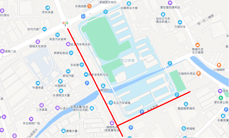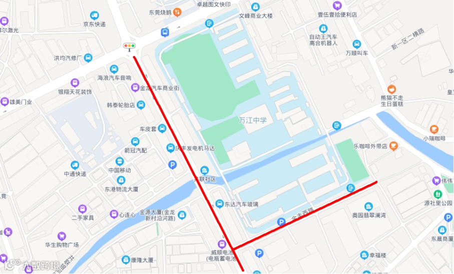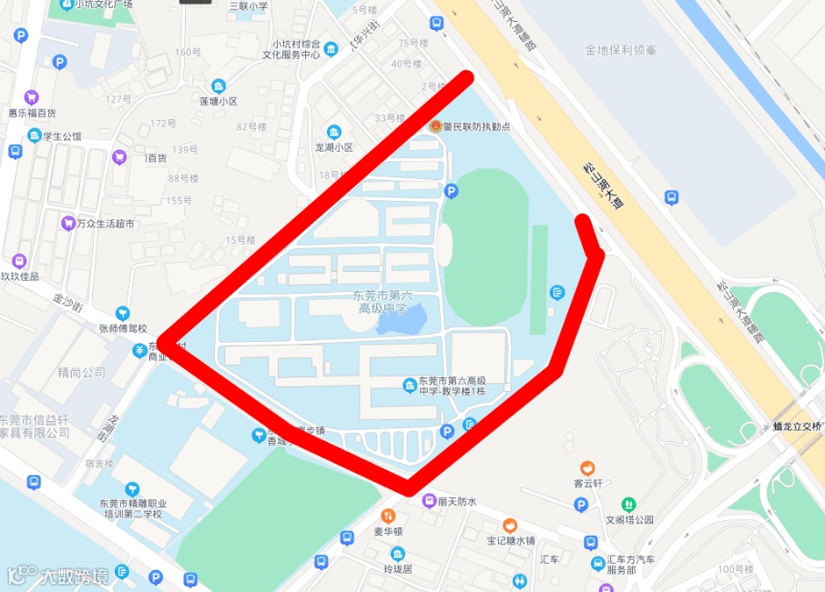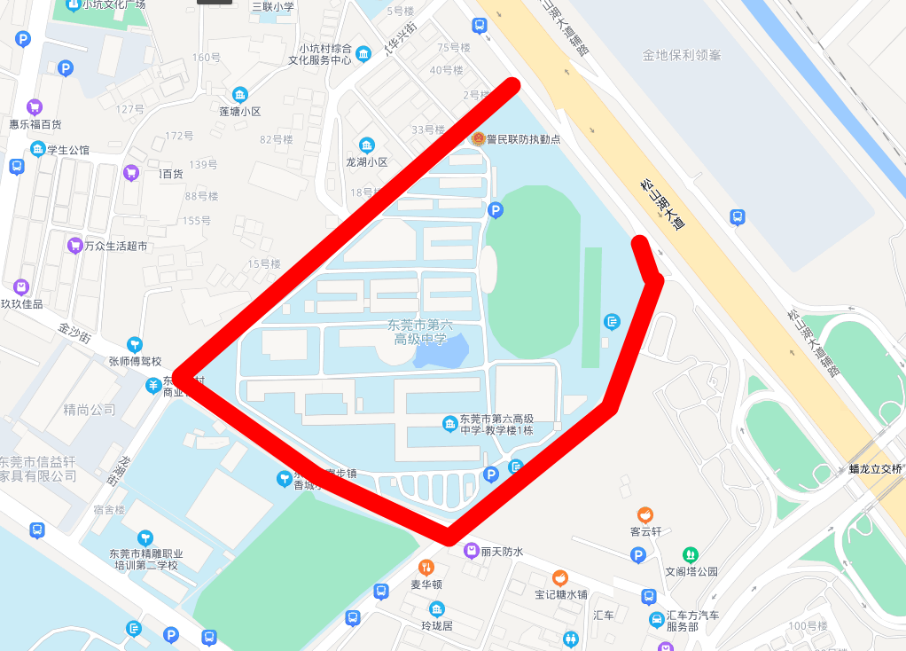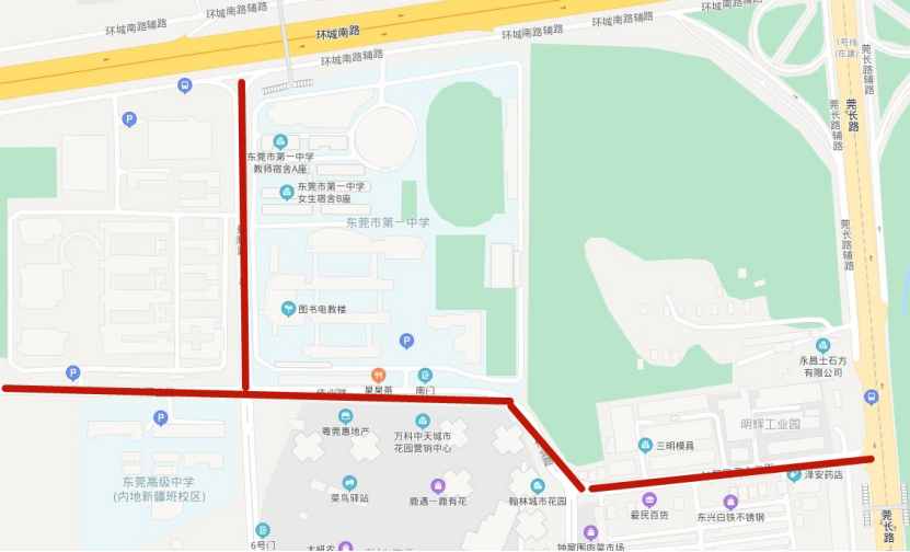4、景顺路机动车辆禁鸣喇叭、慢速通行。伟业路东莞一中路段禁止车辆驶入。