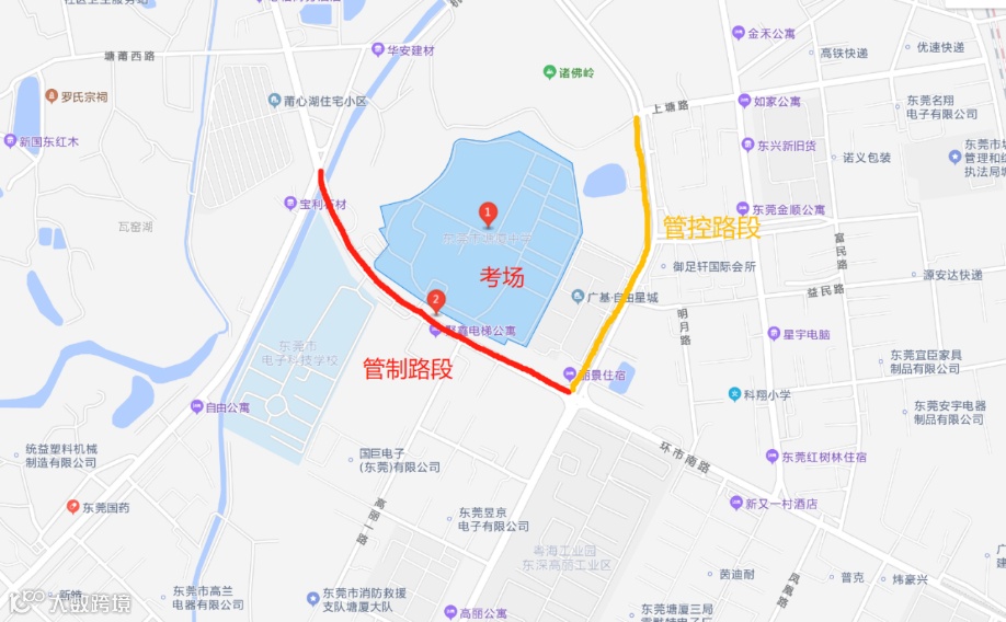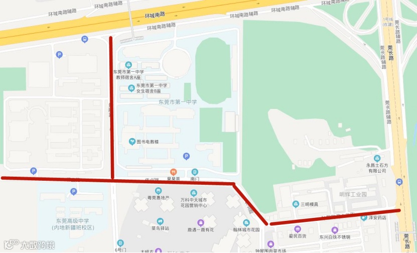 ▲景顺路、伟业路东莞一中路段交通管制示意图