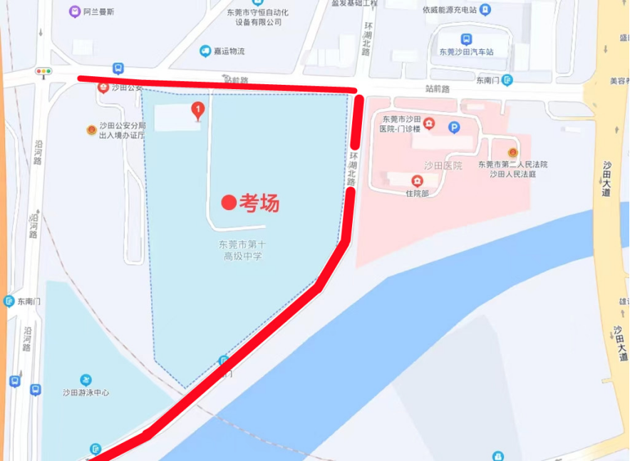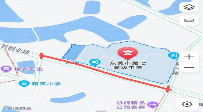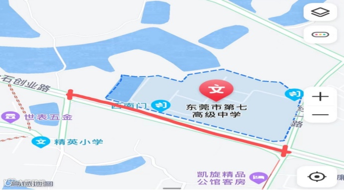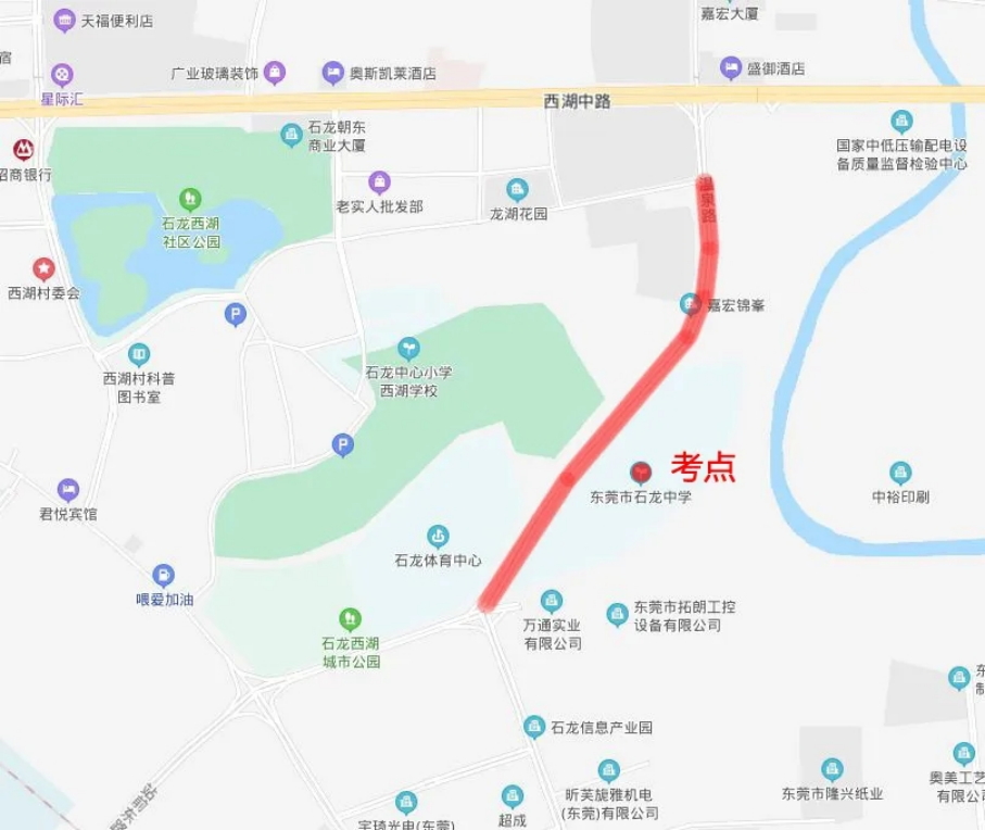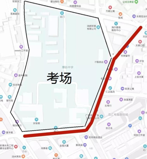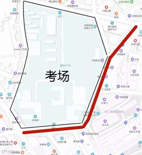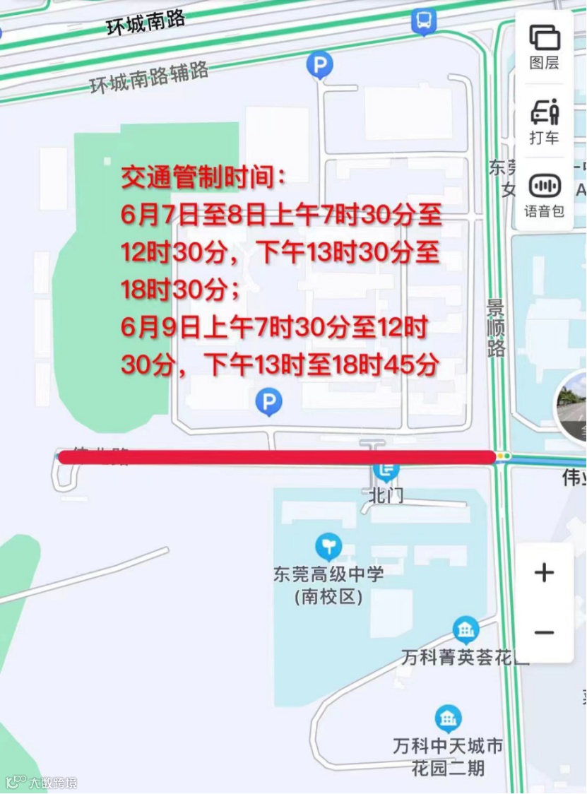 ▲东莞中学松山湖校区考点:对松山湖校区红棉路段进行交通管制,学校东门口路段封路。