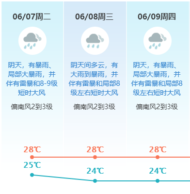 □ 预计东莞高考期间(6日夜间-9日)受高空槽和低涡切变影响,有持续性强降水过程,并伴有雷暴和8到9级短时大风等强对流天气,最强降水时段为6日下午到傍晚、7日凌晨到上午、8日上午到中午、9日早晨到中午。