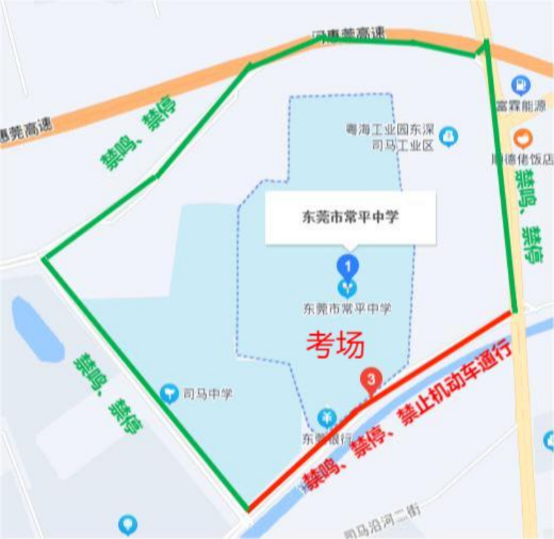 1、对于东江大道常平中学路段,机动车辆实行禁停、禁鸣喇叭、禁止机动车通行;