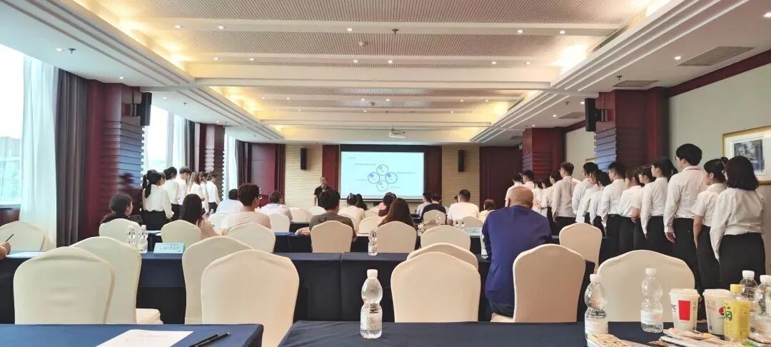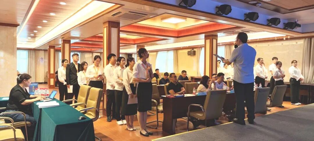 2023年7月3号下午1点南京师范大学泰州学院跨境电商人才双选会专场在上海奉贤区圣淘沙万怡酒店举行,来自南京师范大学泰州学院的22位学员神采奕奕,认真为马上开场的双选做准备。