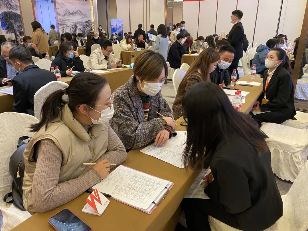 本次双选,是2021年最后一场大型双选会,新老客户报名踊跃,最后到达现场的线上+线下共有45家,老客户25家,瀚海往届优秀学员三江学院20届丰欣雨和21届长春工业大学人文学院李明慧也做为企业代表参与本次招聘。过去的她们以学员的身份站在讲台上,此刻的她们是成熟的外贸业务员坐在了招聘席。也祝愿越来越多的同学们像她们一样发光。