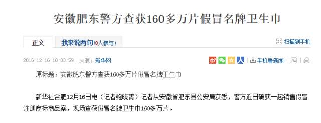 近些年,不仅是食品安全在挑动我们的神经,有种活久见的感觉,现在就连卫生巾也被曝出问题了,下面就是时间比较近的两则新闻: