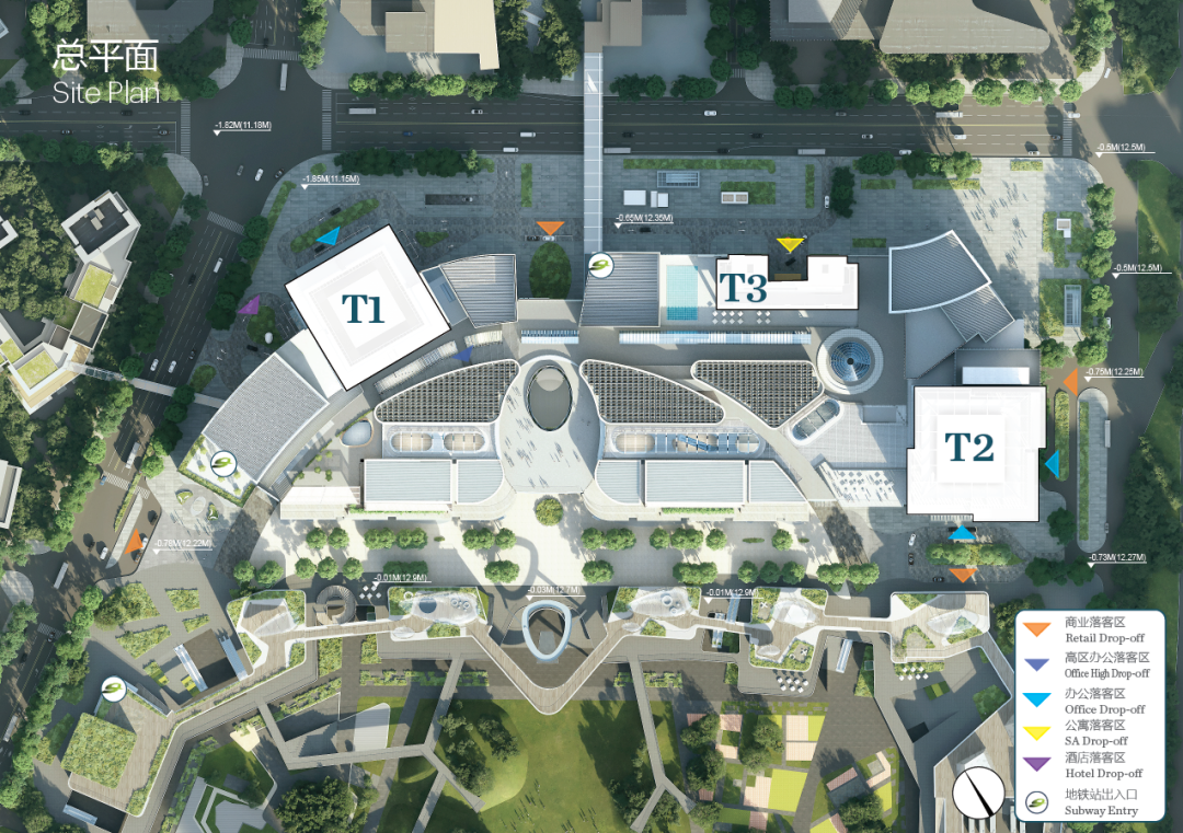 本项目建设总建筑面积约795042.80平方米,设置了三栋塔楼,包括超塔、东莞银行塔楼及公寓塔楼,其中超塔建筑高度为450米、东莞银行塔楼及公寓塔楼建筑高度在250米以内,旨在建设功能为集办公、酒店、商业、服务型公寓于一体的超高层综合体。