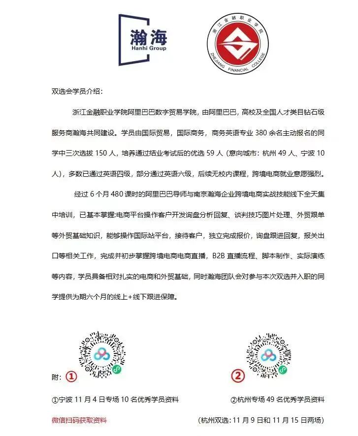 杭州西湖区西溪路553号,2022.11.9 跨境电商人才 浙江专场双选会。阿里巴巴数字贸易学院3期 优秀毕业生特邀专场,报名中。