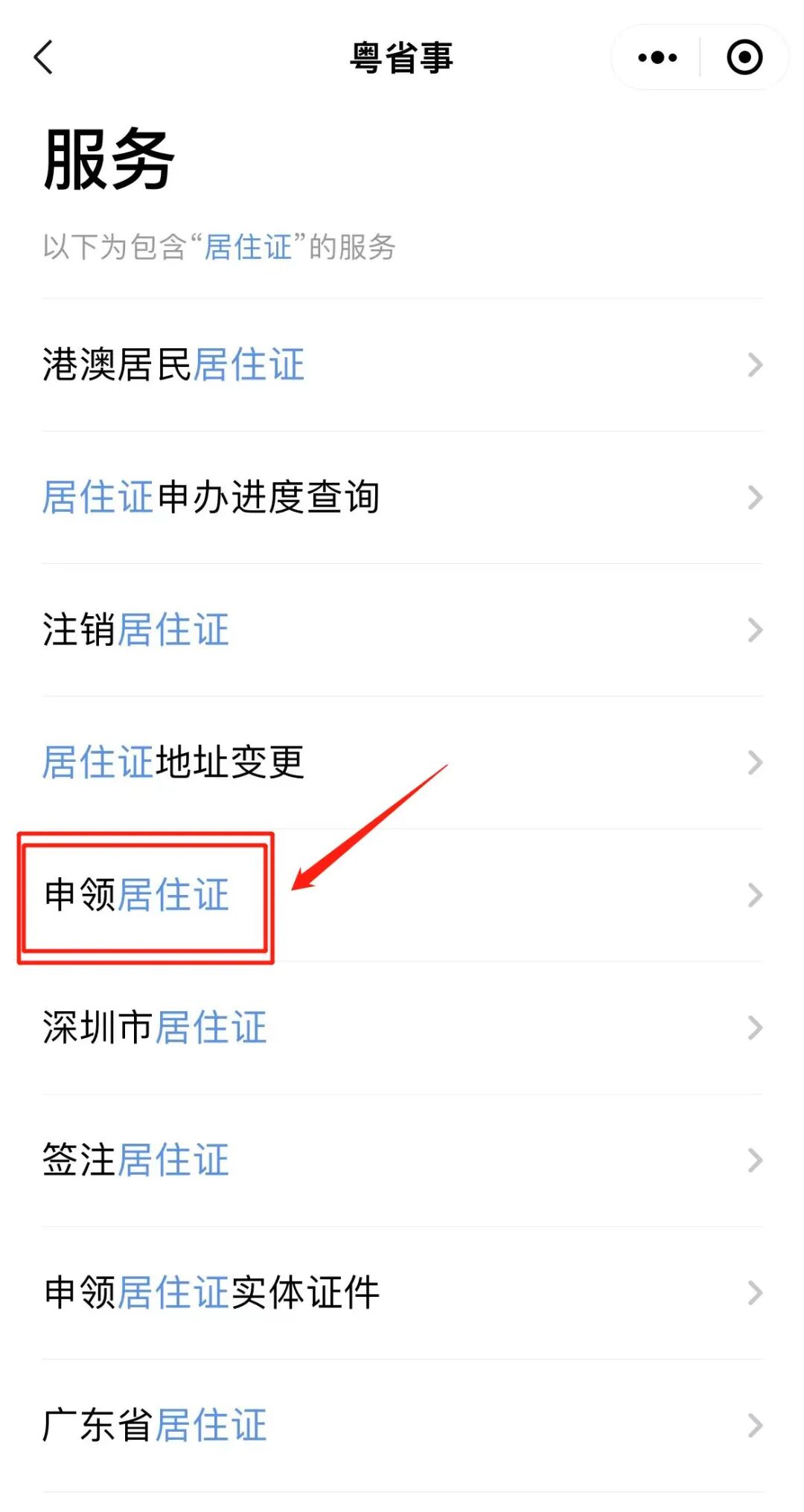 ④找到并点击“申领居住证”