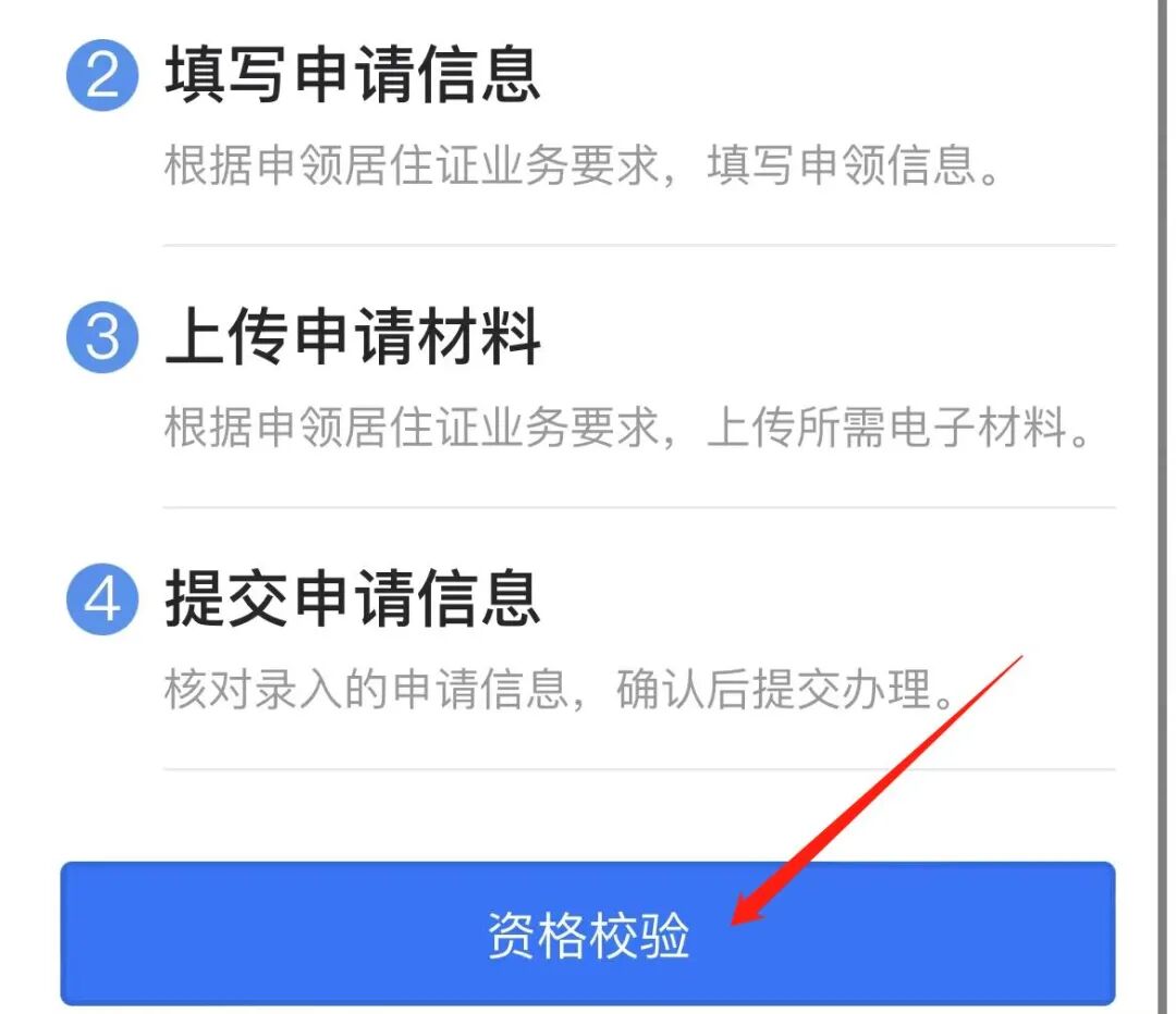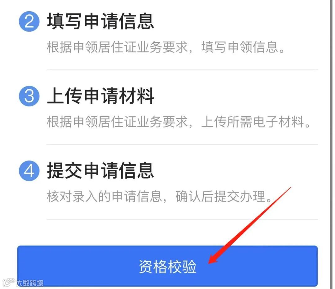 ⑤阅读办理须知,点击“资格校验”