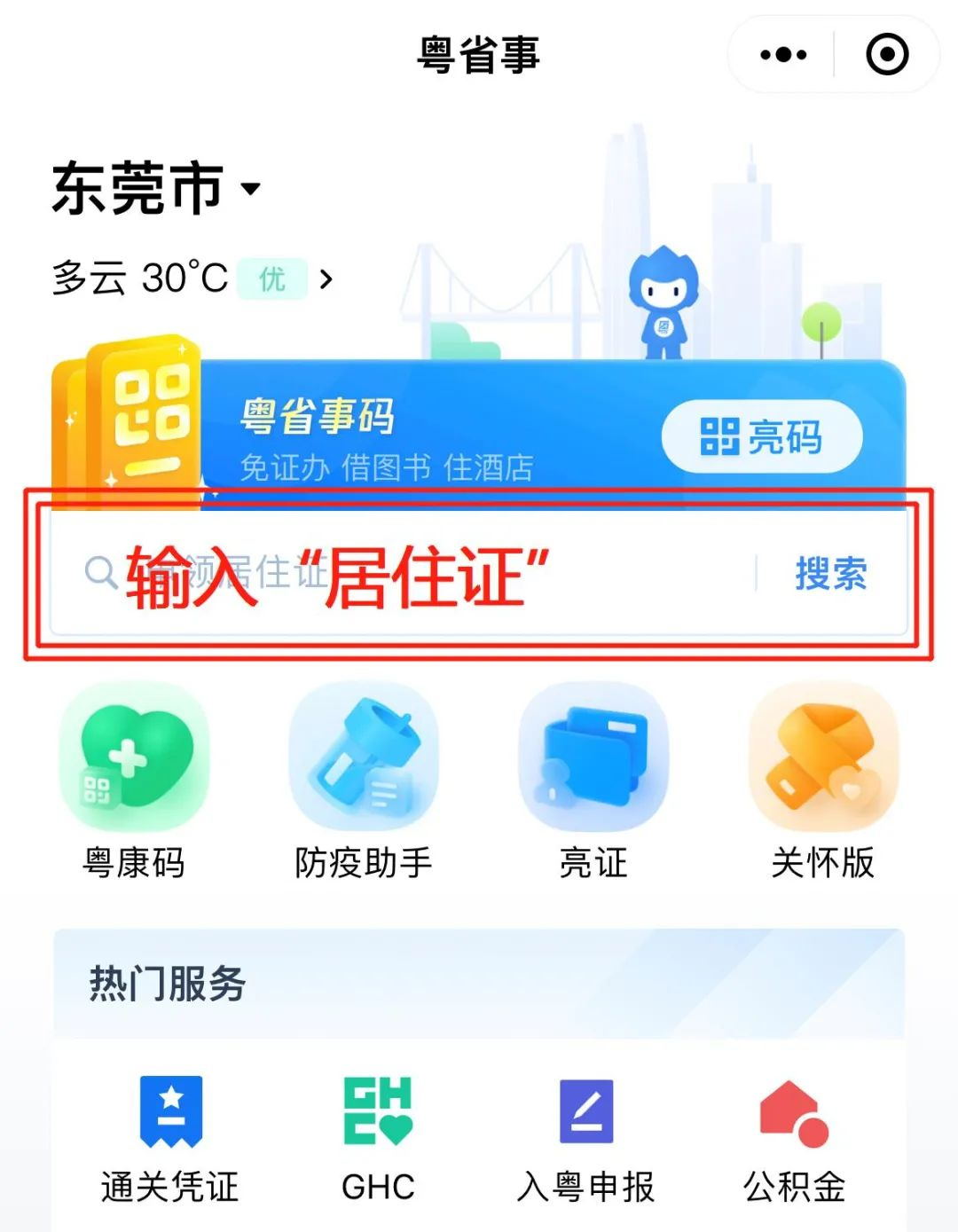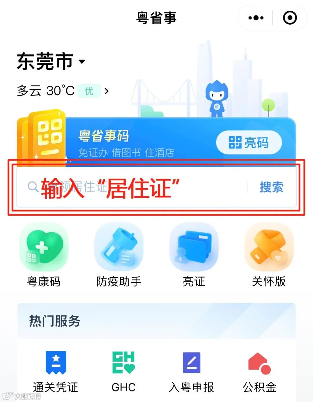 ②在首页输入“居住证”,点击“搜索”
