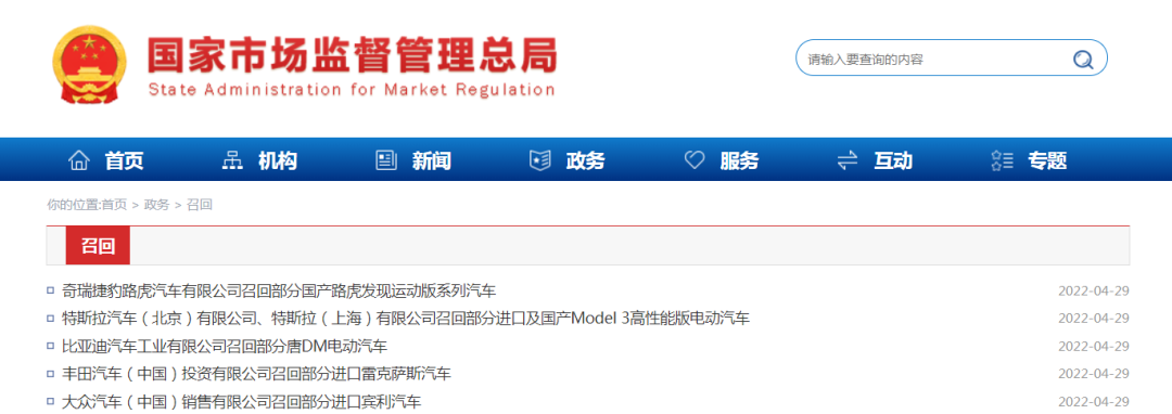 自2022年5月23日起,召回2019年12月11日至2021年3月3日期间生产的部分国产2020款路虎发现运动版、2020款路虎发现运动版新能源汽车,共计30517辆。