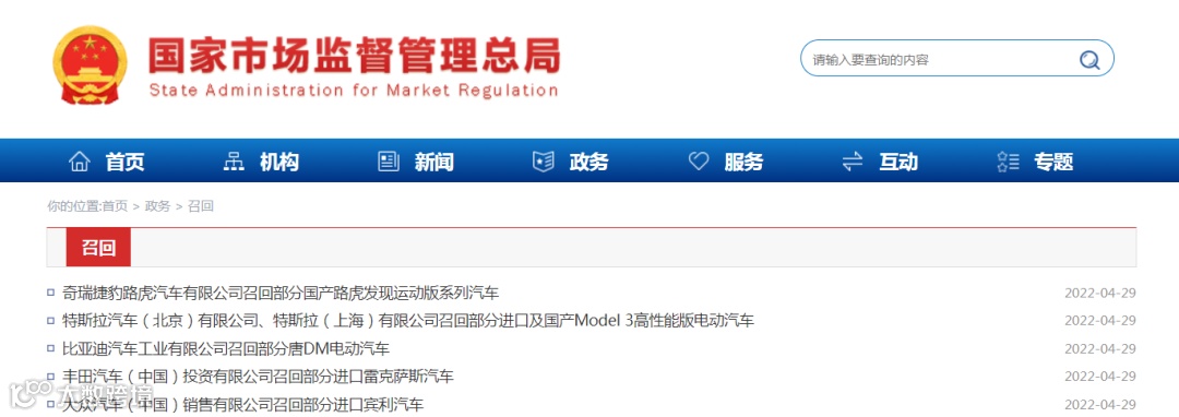 奇瑞捷豹路虎汽车有限公司召回部分国产路虎发现运动版系列汽车