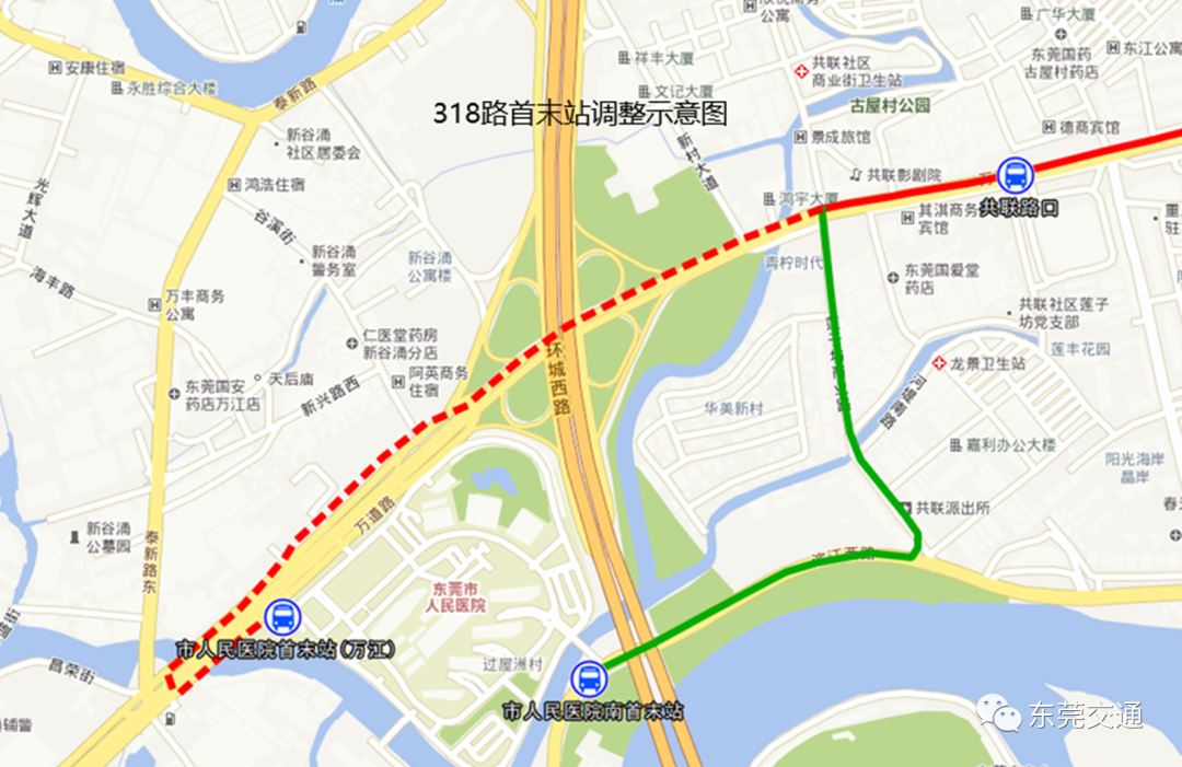 线路名由“东莞火车站茶山侧-生态园东华学校首末站”变更为“东莞火车站茶山侧-塘尾古村首末站”。