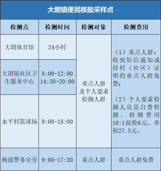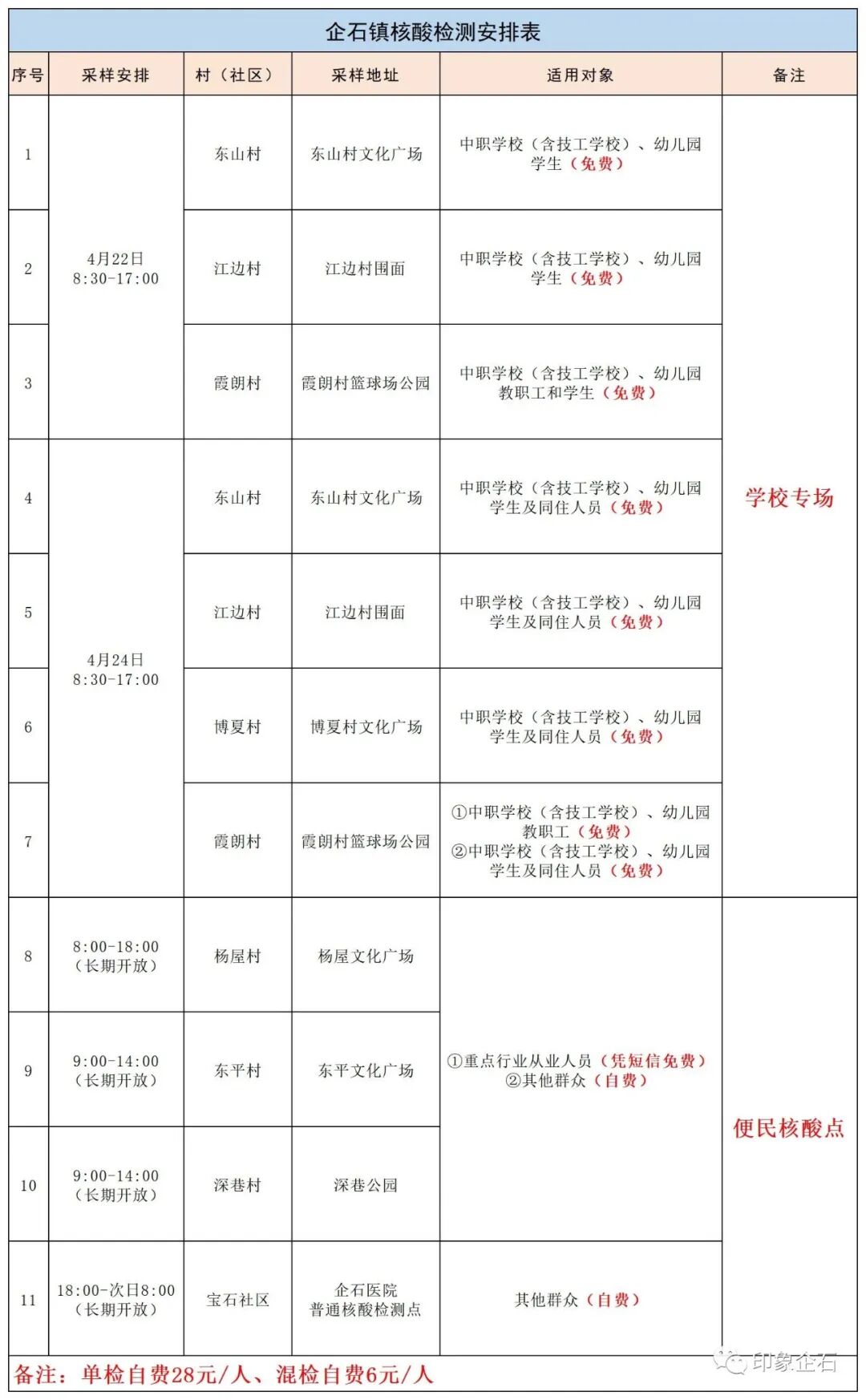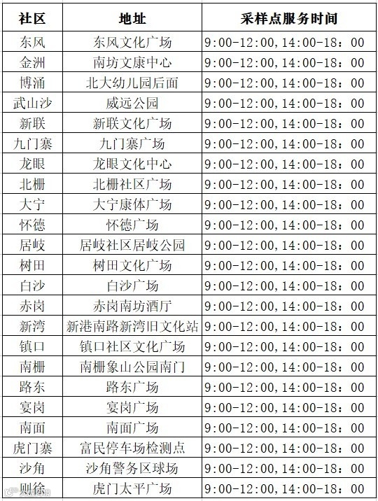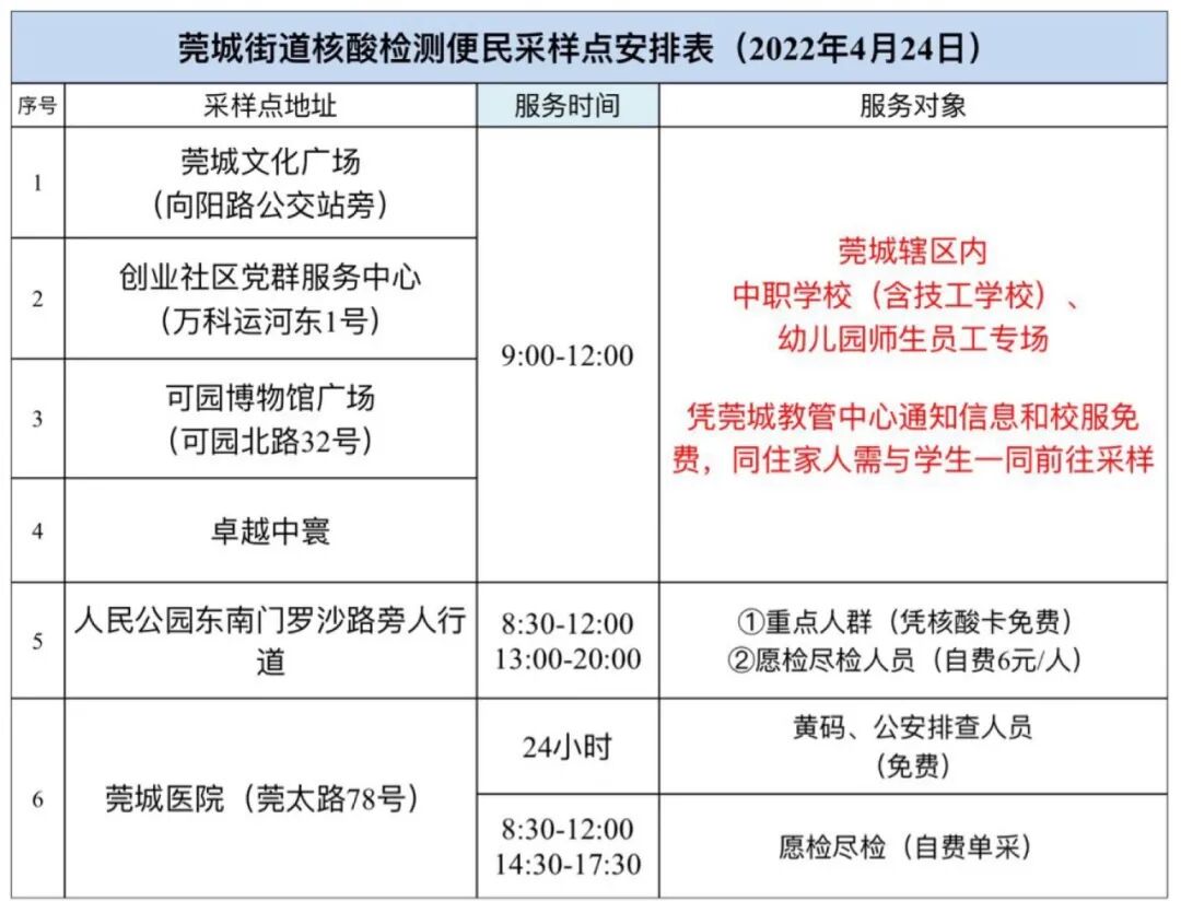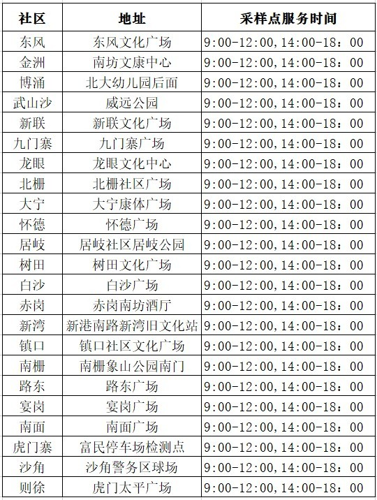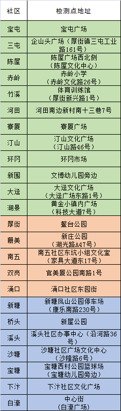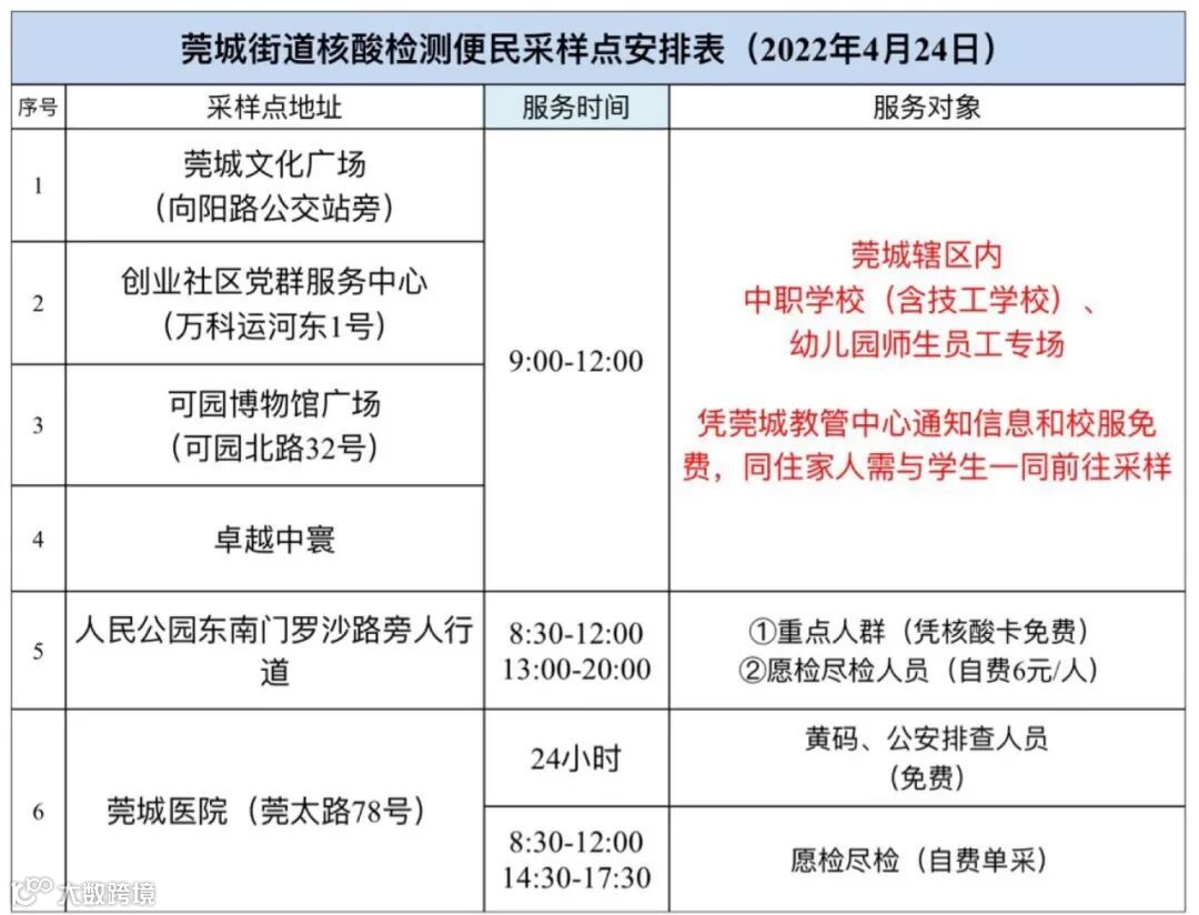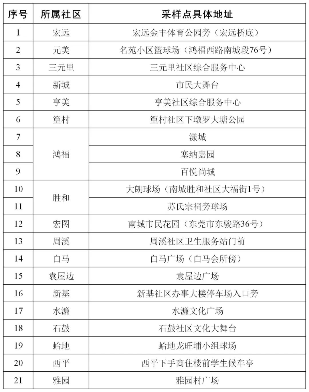 其中,杨屋文化广场、东平文化广场、深巷公园、企石医院普通核酸检测点等四个便民核酸点长期开放。如有调整,请以最新通知为准。