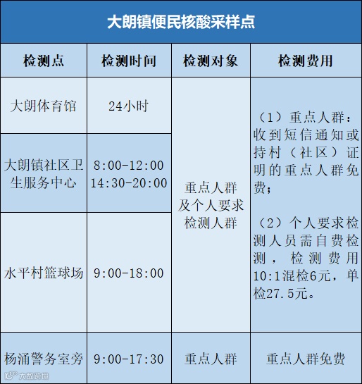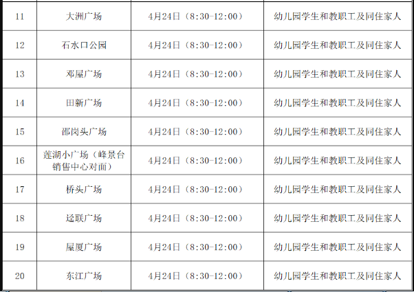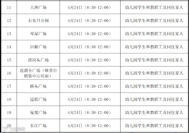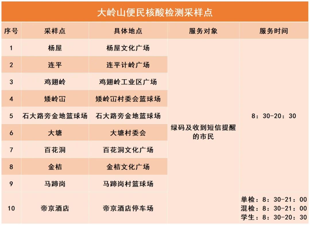 4月24日,大岭山镇便民核酸检测采样点设10处。市民可选择到就近核酸检测采样点获得检测服务。具体核酸采样点设置如下: