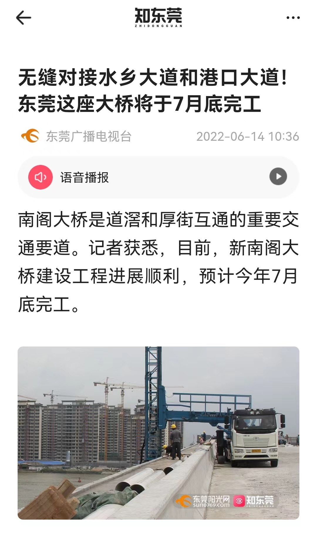 南阁大桥是东莞道滘和厚街互通的重要交通要道,也是东莞市疏港大道延长线工程中重要组成部分。