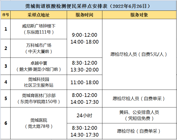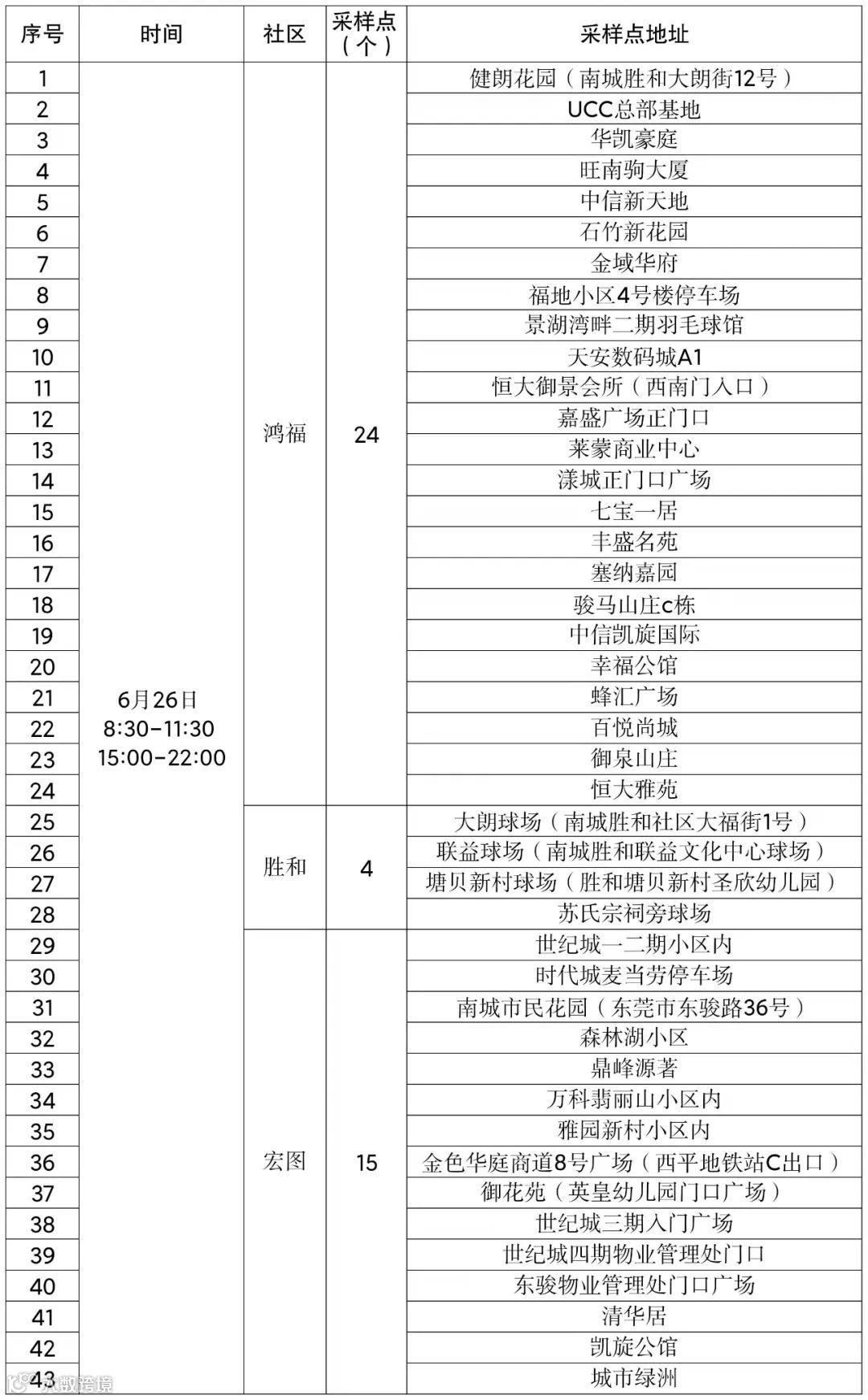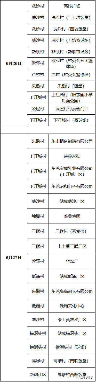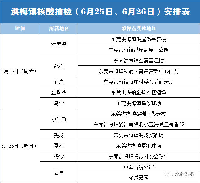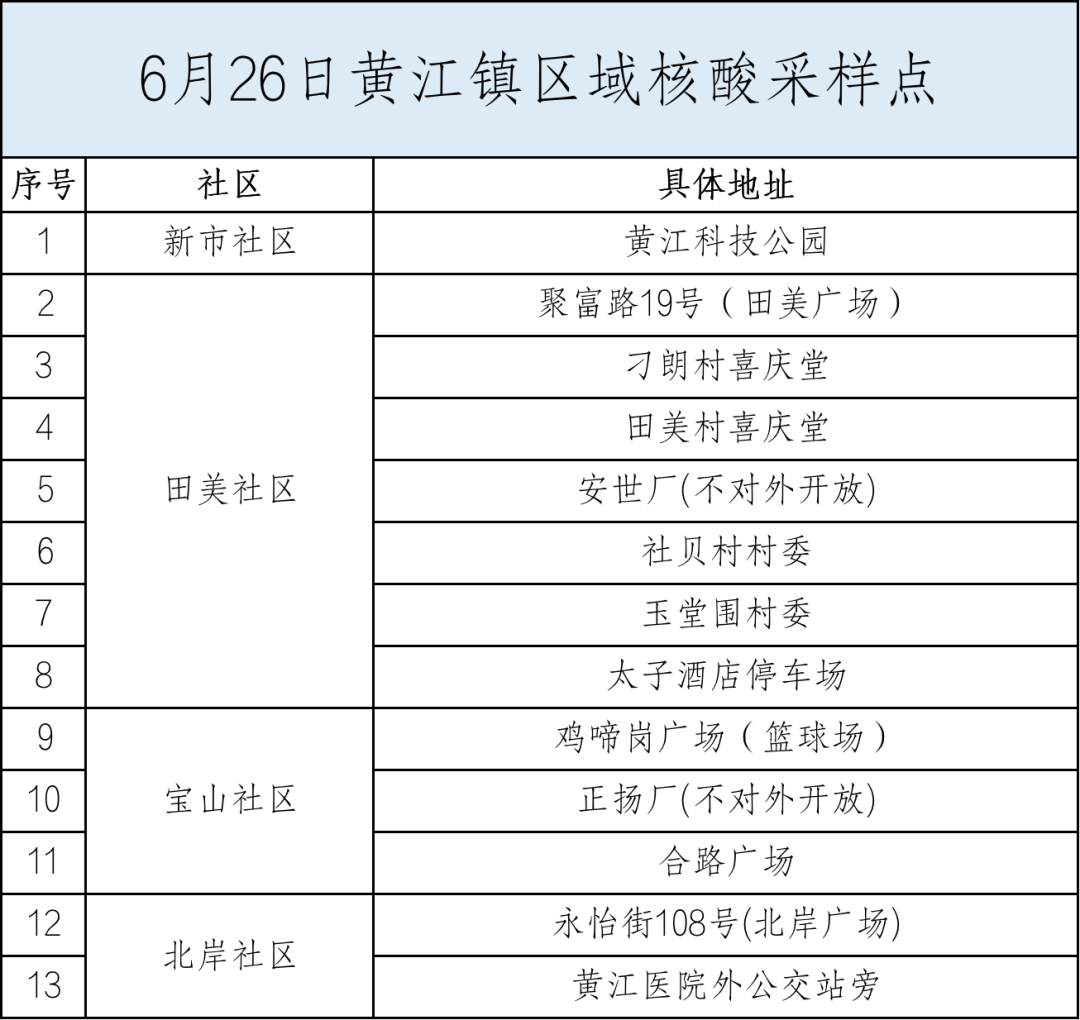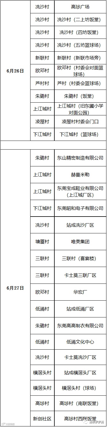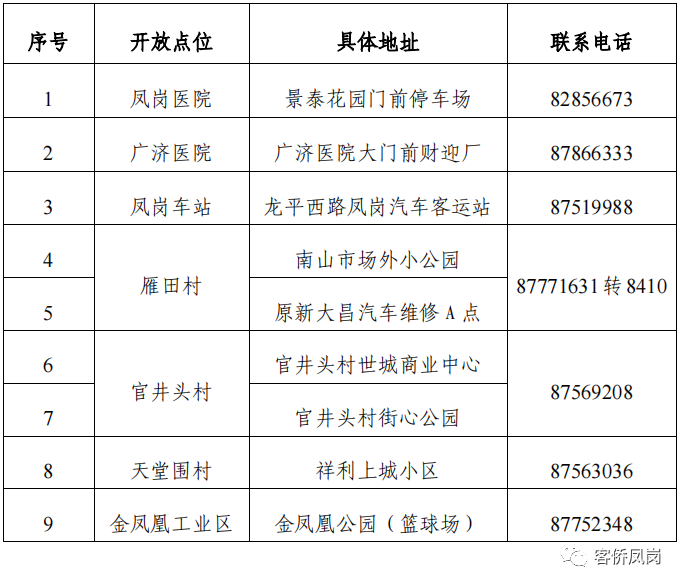 自6月25日至6月30日,凤岗镇继续开放12个便民核酸检测采样点(详见附表),请大家就近进行免费核酸检测,以便生活出行。具体如下: