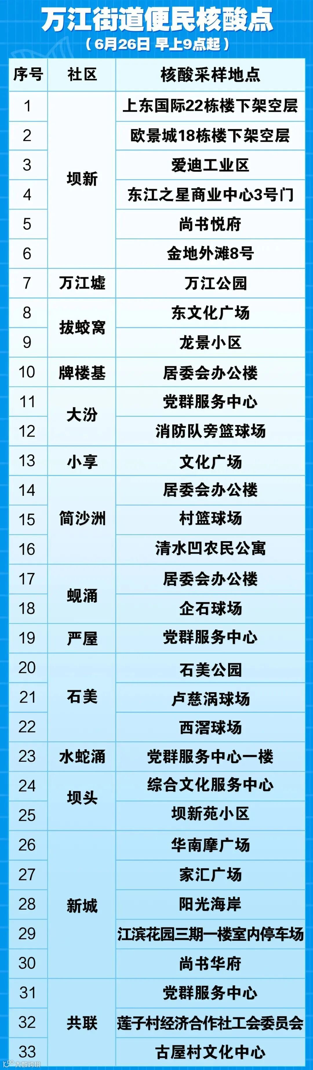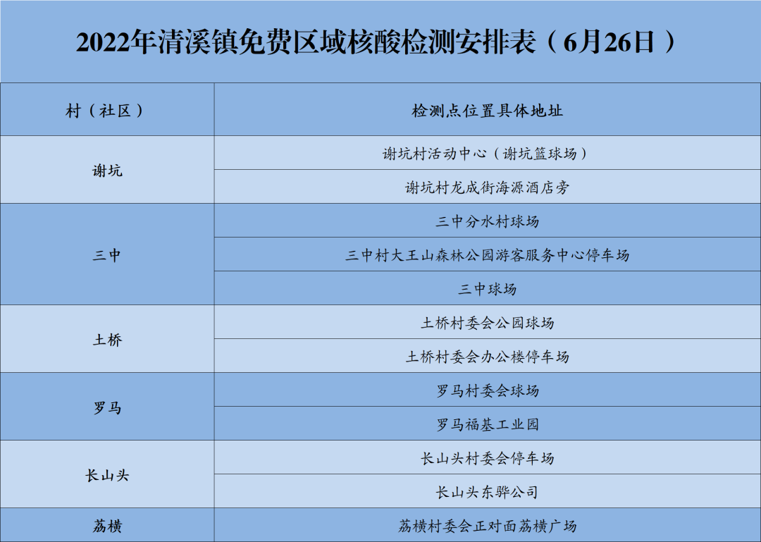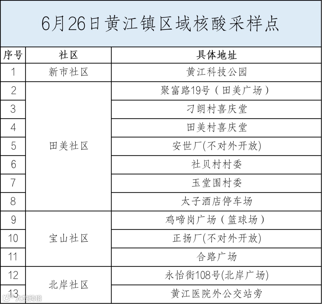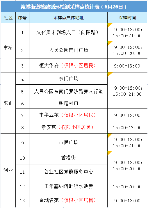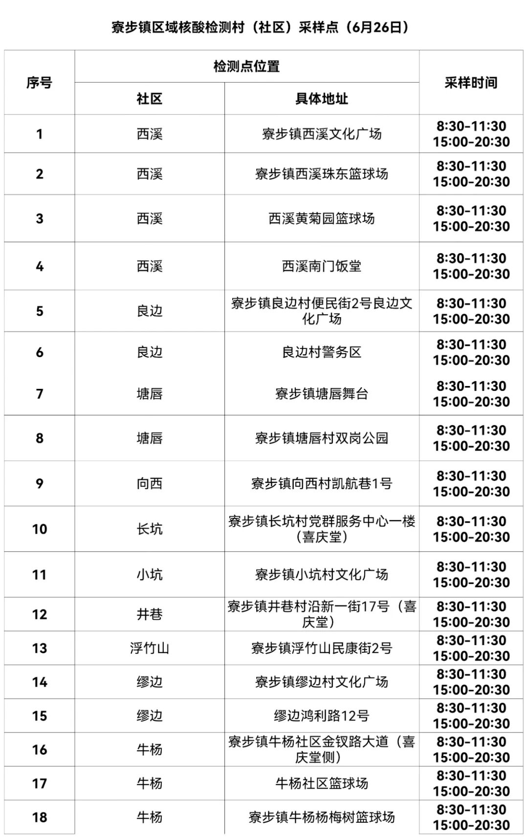 自6月25日至6月30日,凤岗镇继续开放12个便民核酸检测采样点(详见附表),请大家就近进行免费核酸检测,以便生活出行。具体如下: